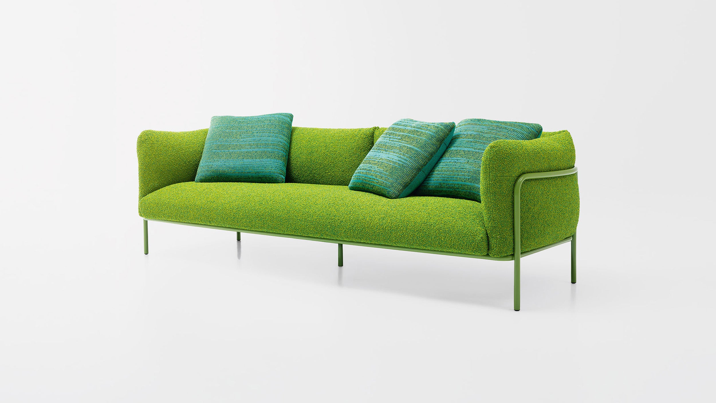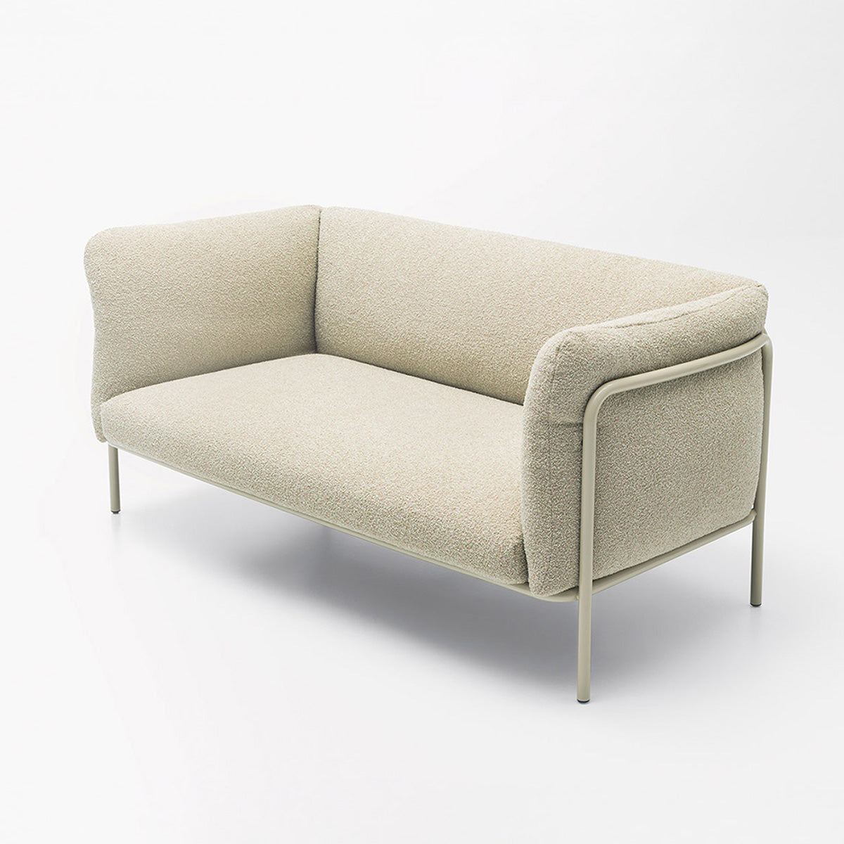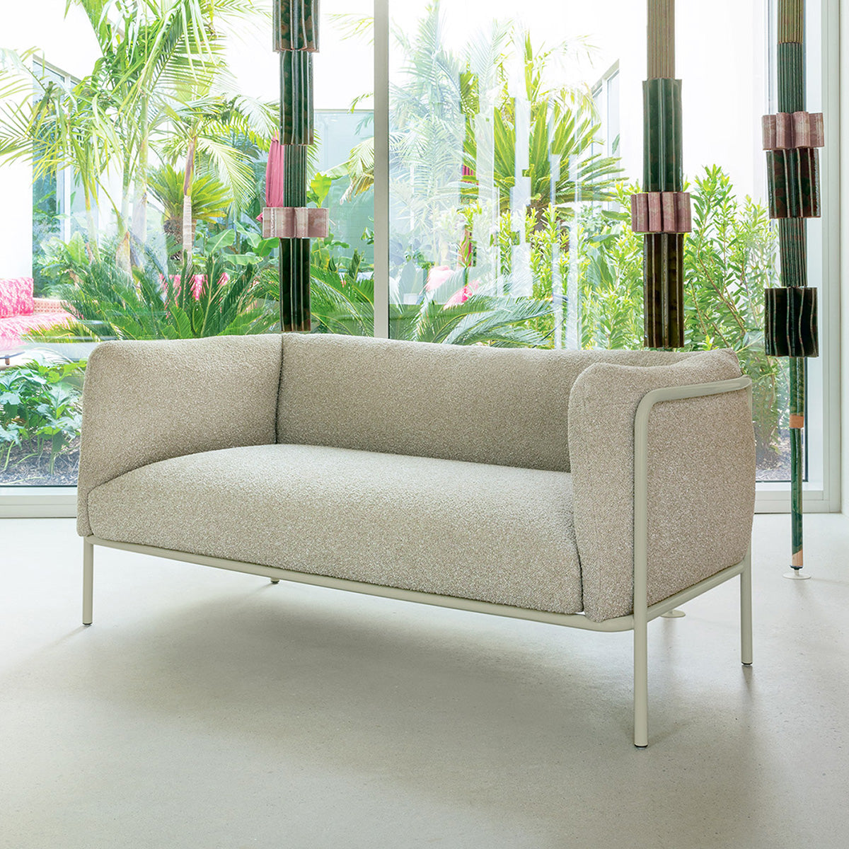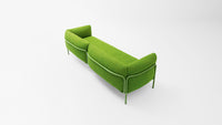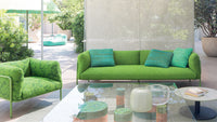 Created by Bertrand Lejoly for Paola Lenti, the Pli Outdoor Sofa offers refined outdoor comfort with a minimalist aesthetic. Its stainless steel AISI 316 frame, finished in glossy varnish and complemented by elastic belts and plastic spacers, ensures durability and style. The sofa features a single cushioned element serving as seat, backrest, and armrest, filled with Aerelle® blue polyester fiber, a polyurethane core, and covered in waterproof polyester foam. Upholstery is removable and available in selected fabrics. Ideal for both outdoor settings and elegant indoor spaces.