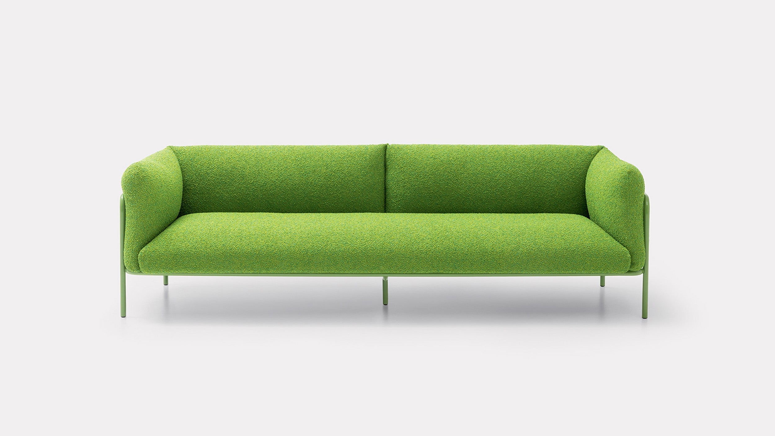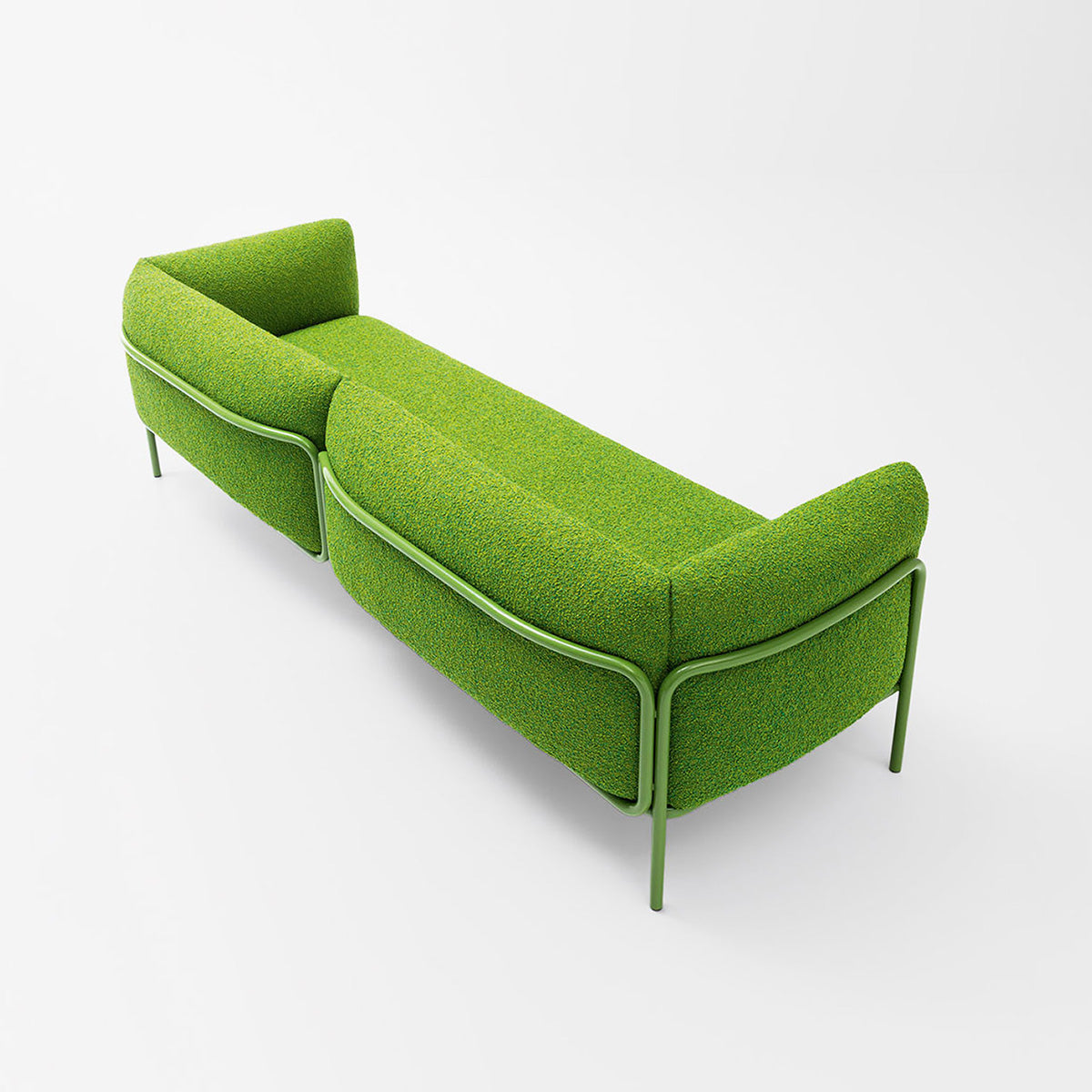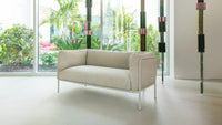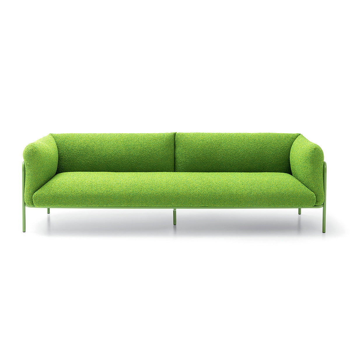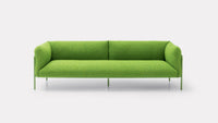 Created by Bertrand Lejoly for Paola Lenti, the Pli Outdoor Sofa offers refined outdoor comfort with a minimalist aesthetic. Its stainless steel AISI 316 frame, finished in glossy varnish and complemented by elastic belts and plastic spacers, ensures durability and style. The sofa features a single cushioned element serving as seat, backrest, and armrest, filled with Aerelle® blue polyester fiber, a polyurethane core, and covered in waterproof polyester foam. Upholstery is removable and available in selected fabrics. Ideal for both outdoor settings and elegant indoor spaces.