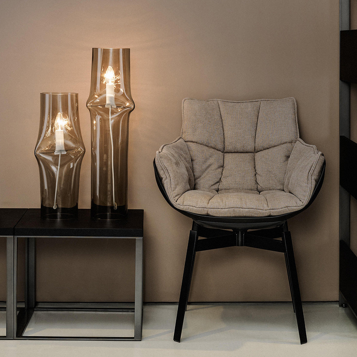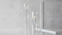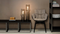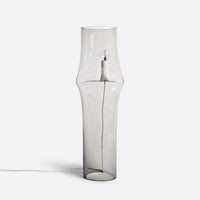 The Press Floor Lamp, designed by Nendo as part of Lasvit’s collection, showcases the minimalist elegance of Japanese craftsmanship. Inspired by the Mingei (Folk Crafts) Movement, this lamp features a glass tube that has been organically pressed and pinched, forming a unique, soft shape without the use of metal molds. Available in Clear and Smoke glass finishes, the lamp’s sleek lacquered white glossy frame complements its subtle yet striking design. Standing at 640 mm in height and 140 mm in width, the Press Lamp adds a refined, contemporary touch to any modern interior while celebrating the beauty of functional art.