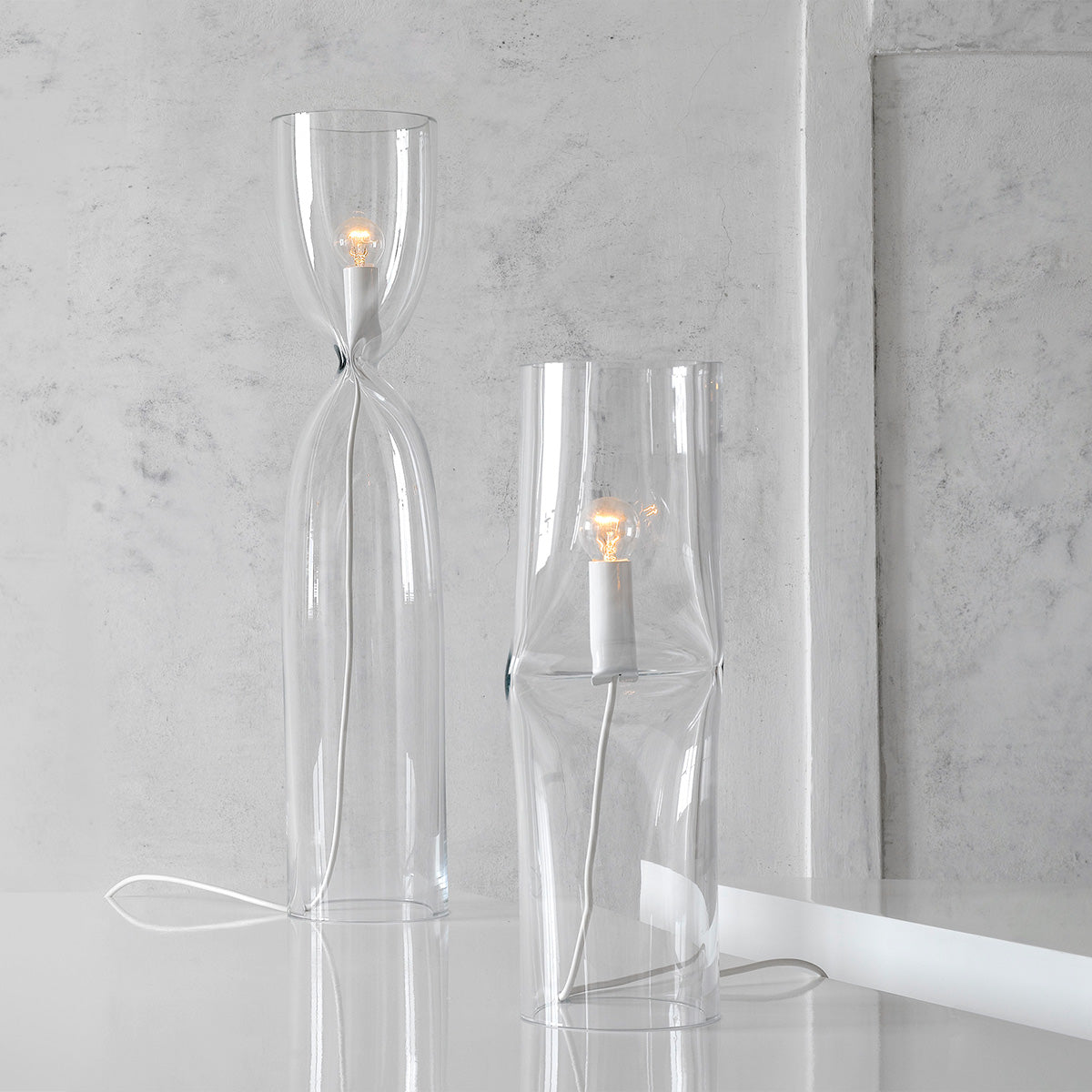 Inquire with a Design Consultant- Material: Made from hand-blown, clear glass that has been pressed to create unique pinched sections, resulting in a soft, organic form. The glass tubes are free of metal frameworks, allowing the lamp to maintain a minimalist and natural aesthetic.