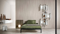 Designed by Neuland Industriedesign, the hanging bookcase allows for the creation of eye-catching configurations thanks to its reversible modules. The design features irregularly spaced vertical and horizontal dividers that create a captivating and sculptural complement for storing books, souvenirs, sculptures, and other ephemera. In creating the Randomito Wall Shelf, the designers cleverly considered storage habits to ingeniously create a play between spaces for objects.