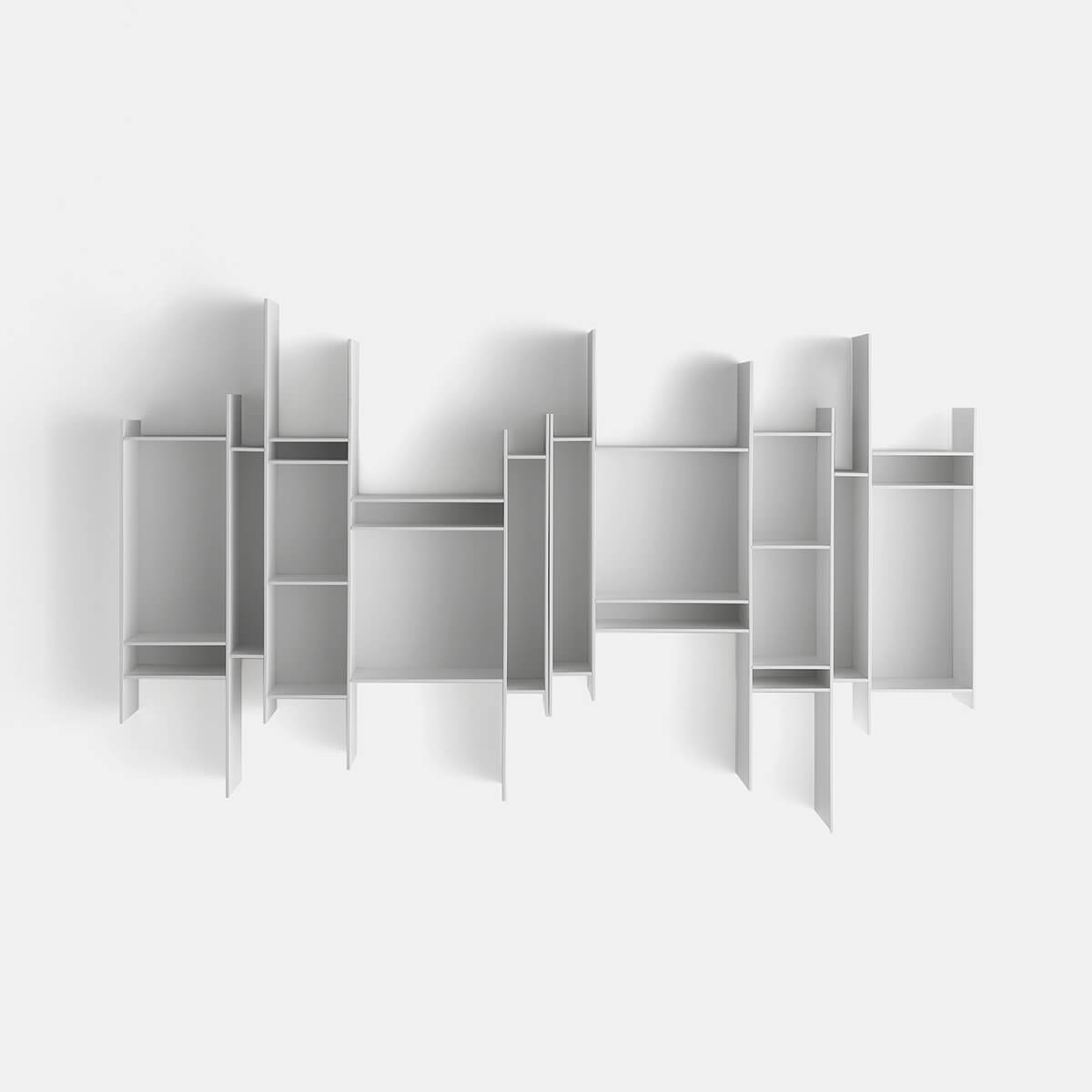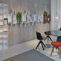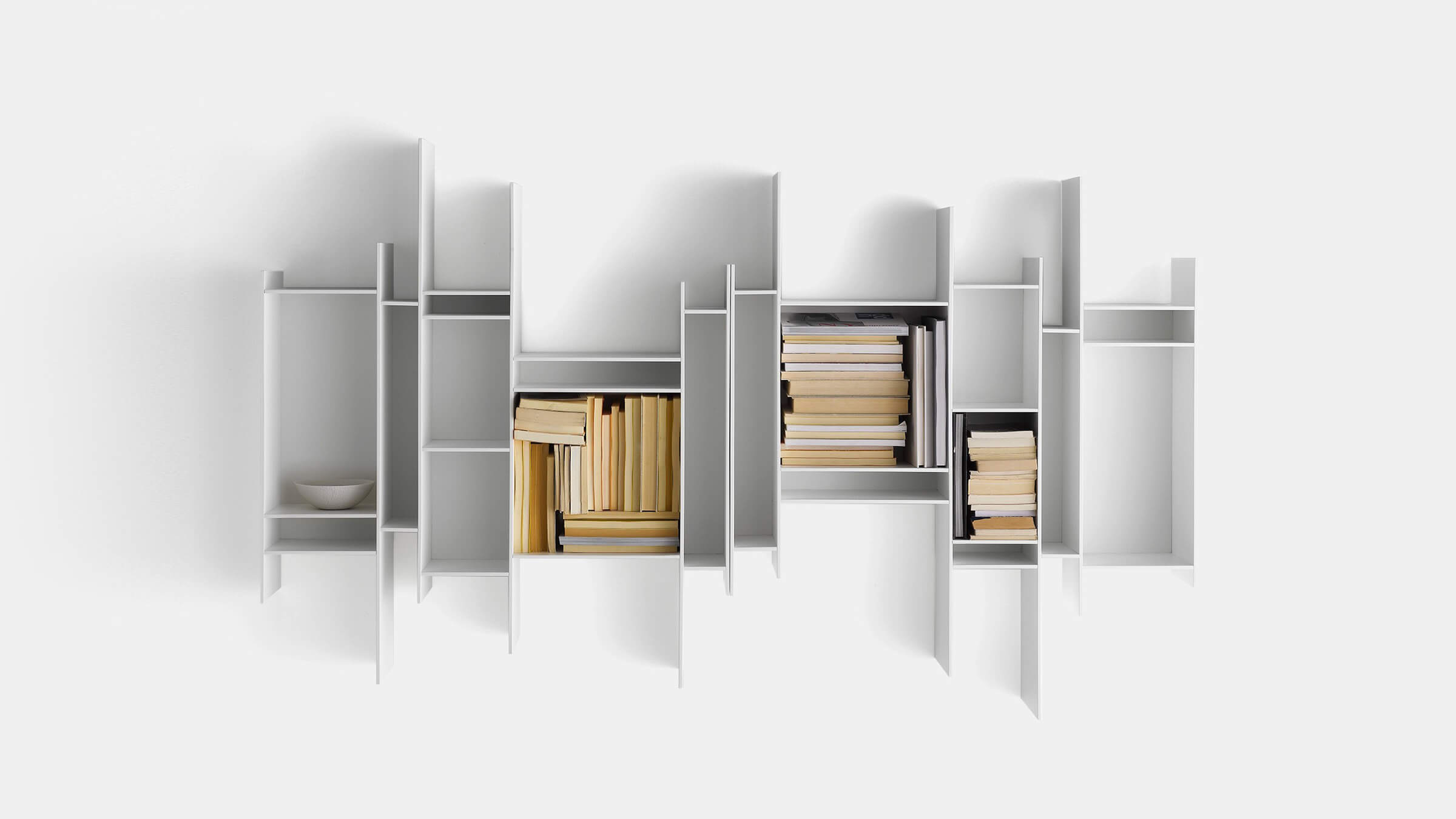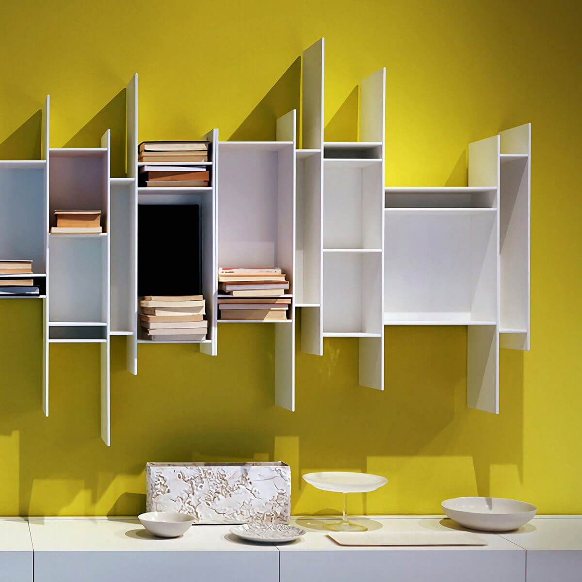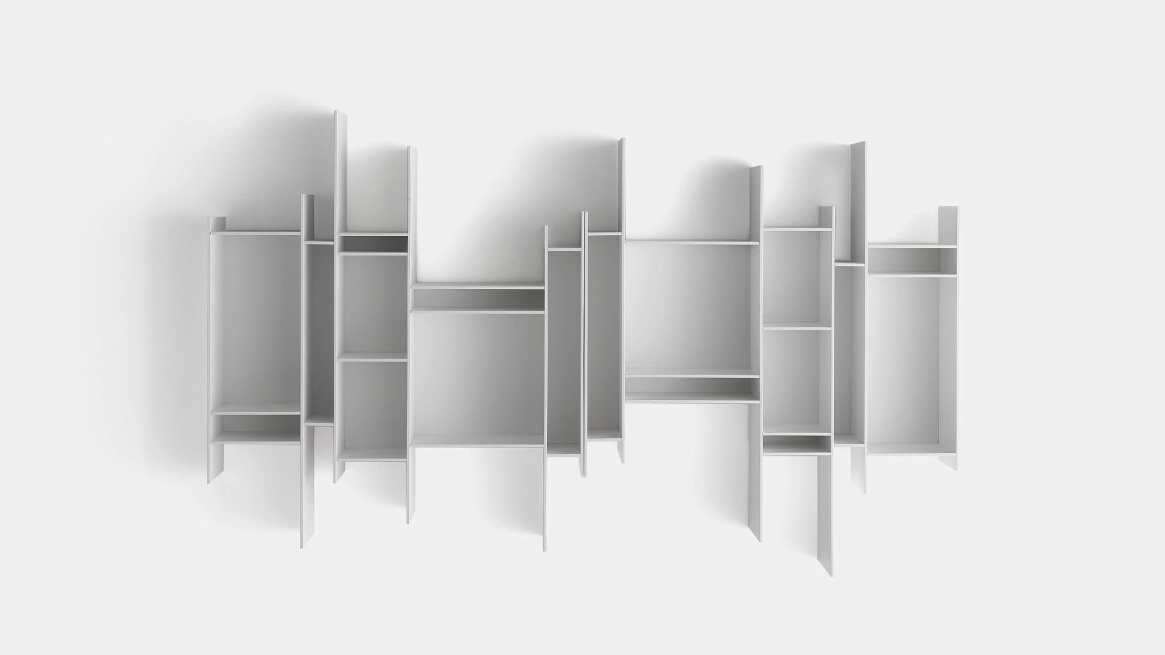 Free your books from the confines of traditional bookcases with the Randomito Wall Shelf, a modular storage solution with a graphic twist.