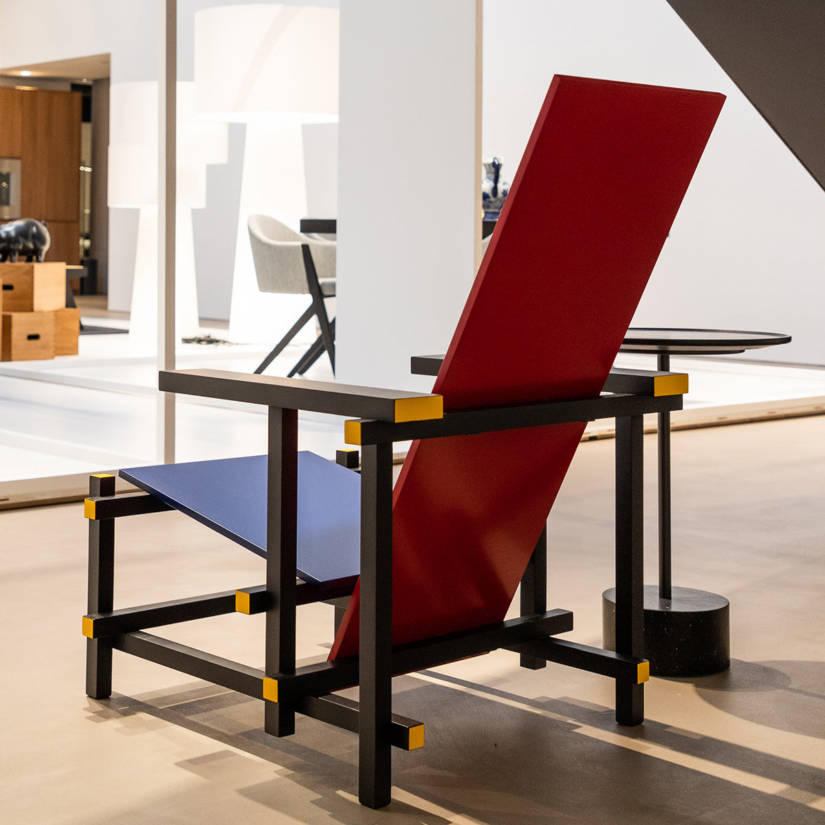 The Red and Blue Chair is a seminal work of De Stijl design, originally created by Gerrit T. Rietveld in 1918 and faithfully produced by Cassina. With its bold use of primary colors and intersecting planes, the chair transforms geometric abstraction into functional art. Its precise construction in solid beech and multilayered lacquer celebrates both craftsmanship and avant-garde design ideology. As a collector’s icon and sculptural statement, it remains one of the most recognized pieces of 20th-century design.