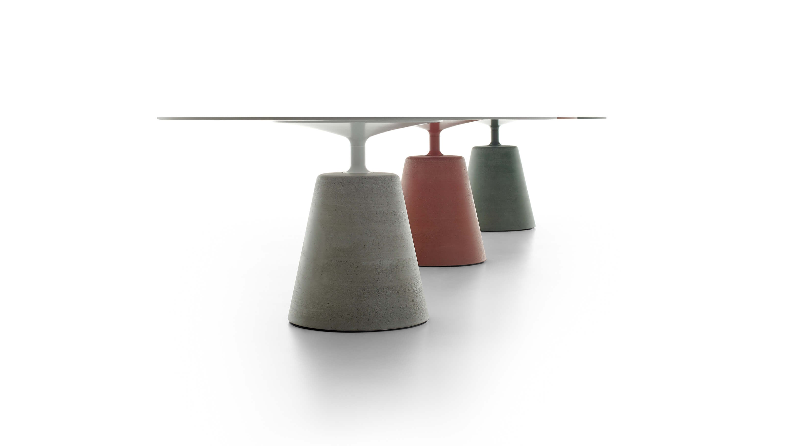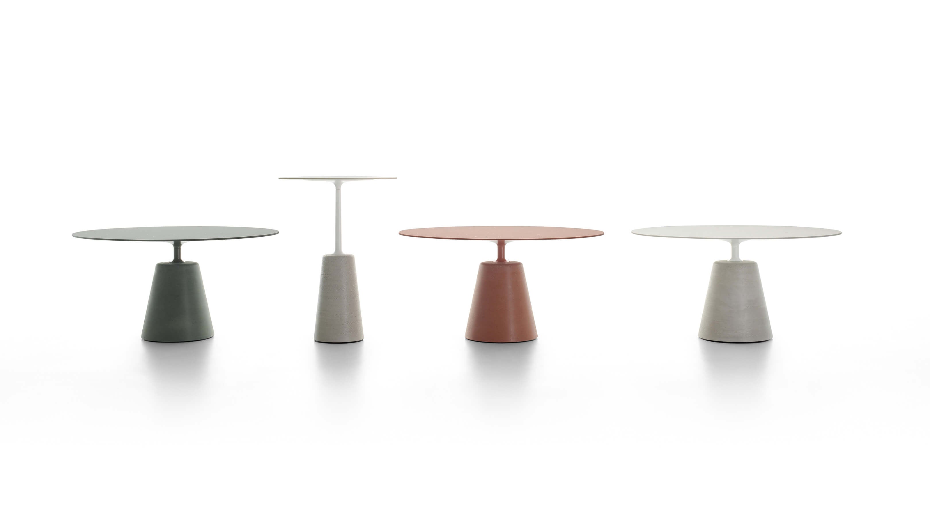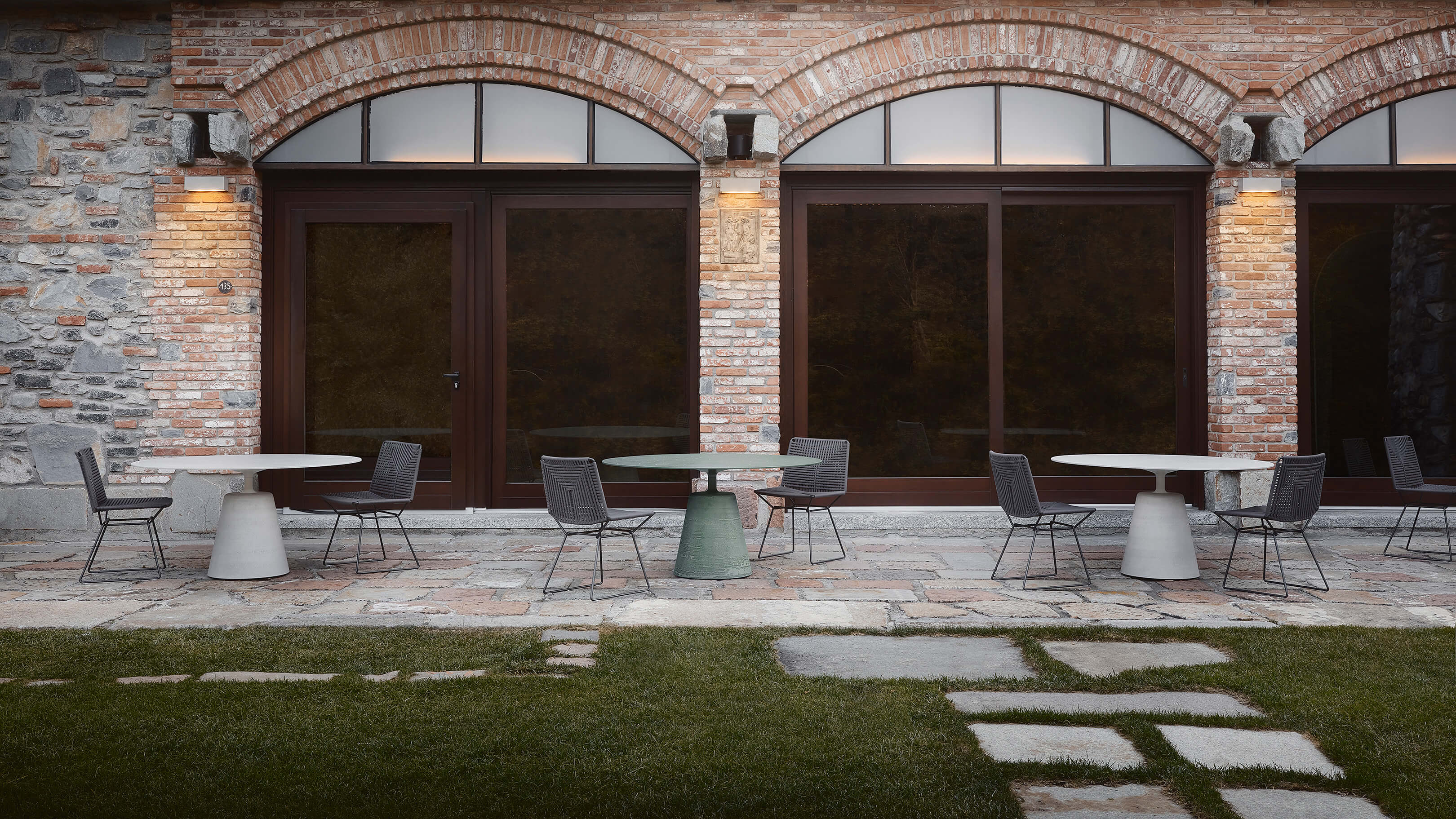 The iconic Rock Table, with its fluid and elegant silhouette, fits with great personality into a variety of outdoor settings, residential or public: gardens, terraces, dehors. In the new oval version, Rock Table becomes the perfect set for large outdoor gatherings, hosting up to 12 people.