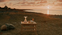 - Sculptural, minimalist form inspired by natural stones