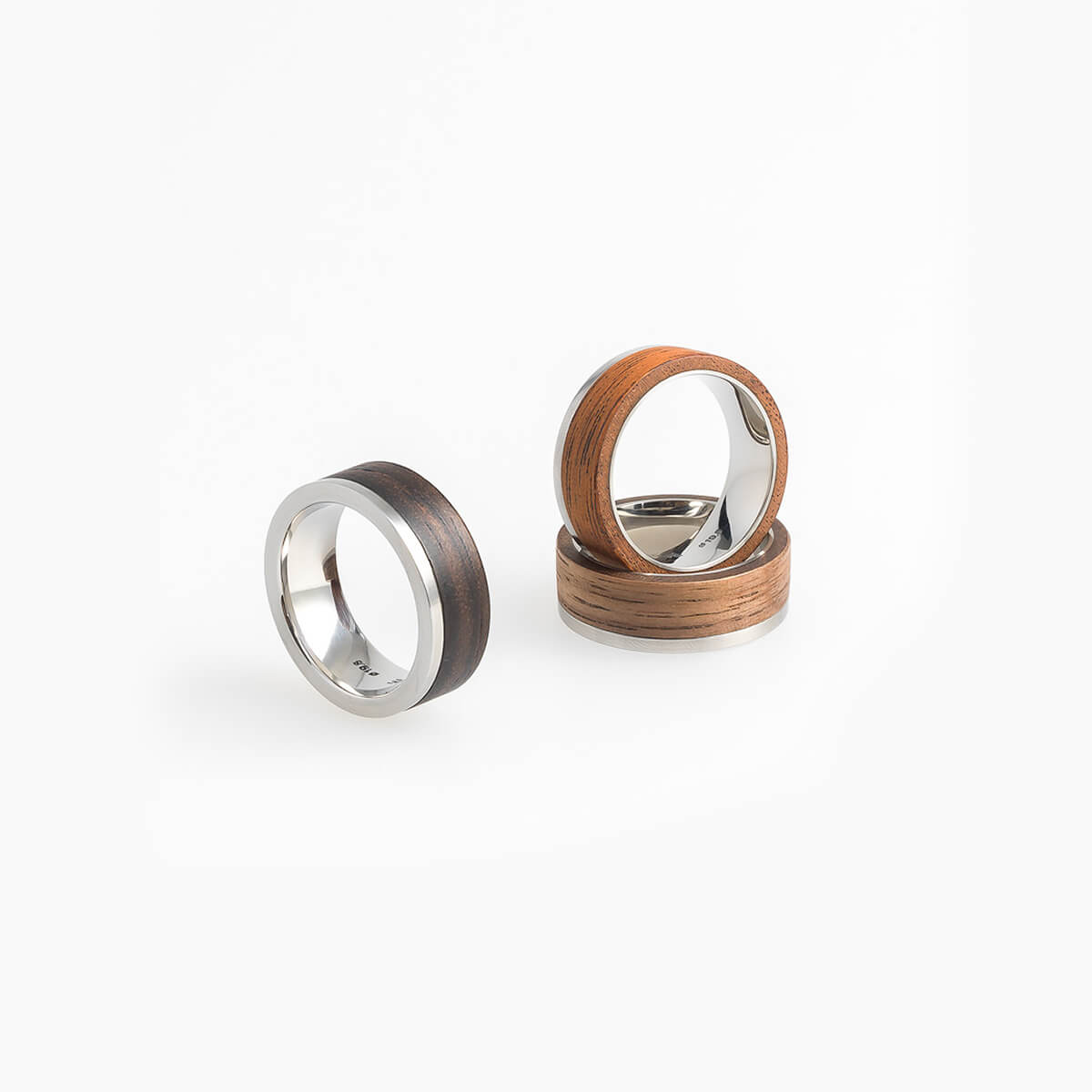 Available in three sizes and three different wood tones, the ring is combined with stainless steel creating an interesting juxtaposition of texture. A poetic exploration of nature’s gifts, the designer attempts to combine different veneers and wood types through a mechanical turning process. No two are the same, giving this ring the distinctive sense of individual personality.