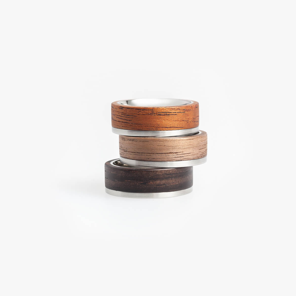 - Each ring is unique and is created from various colors and types of wood to create rich graining