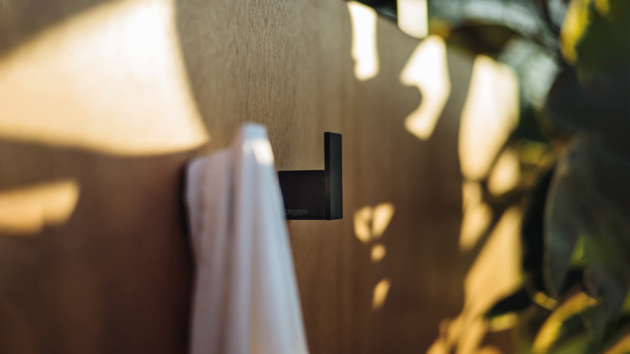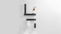 The accessories include holders for small objects in various sizes, a soap dispenser and towel holder. Suitable for use with the bathtub, washbasin or sanitary fittings, Sen stamps its distinctive mark on any space in which it is fitted.