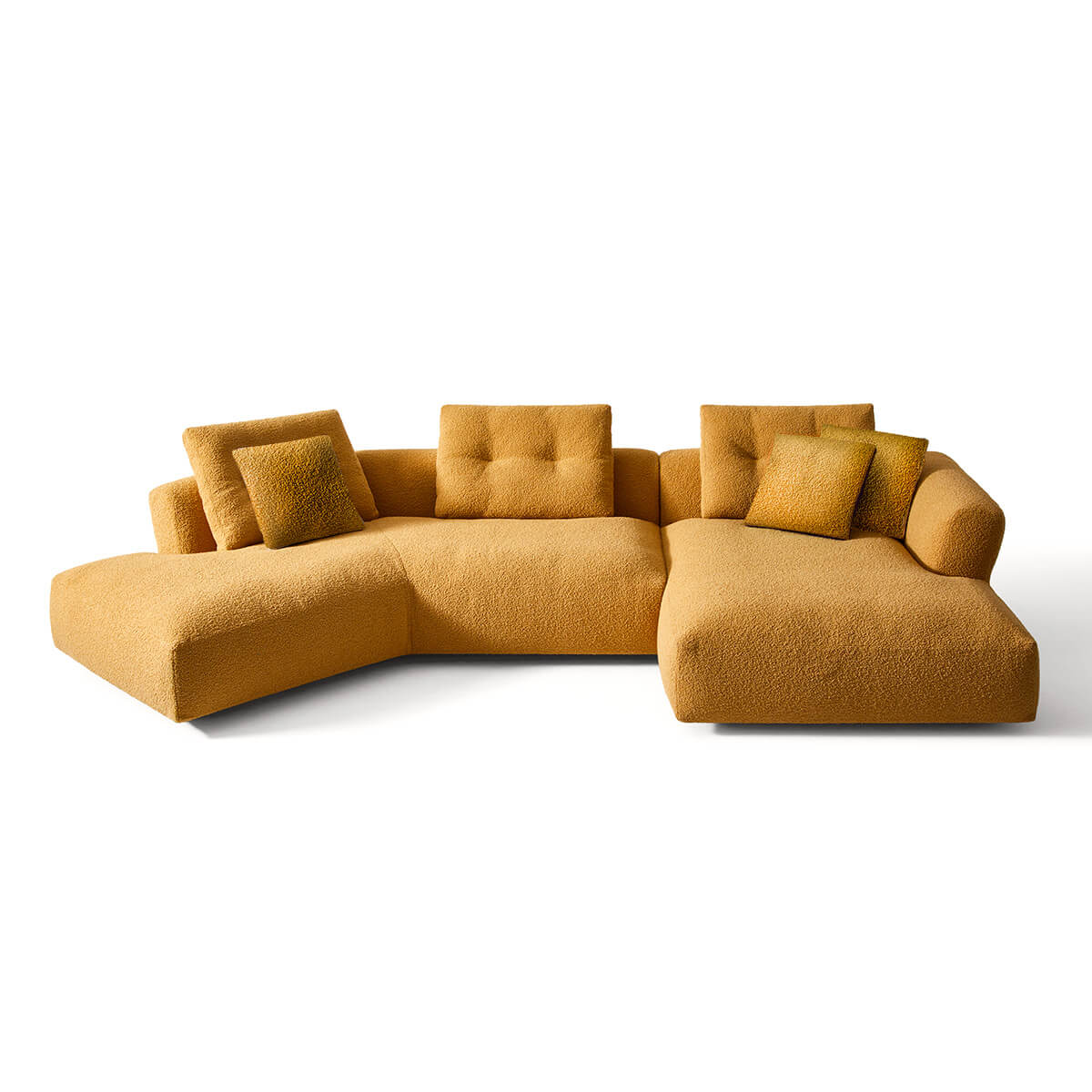 The sofa's cushions are filled with 100% recycled PET fiber, developed in collaboration with Cassina LAB, reflecting a commitment to sustainability without compromising on comfort. With a wide range of modular elements, the Sengu Bold Sofa offers versatile configurations to suit various interior spaces.