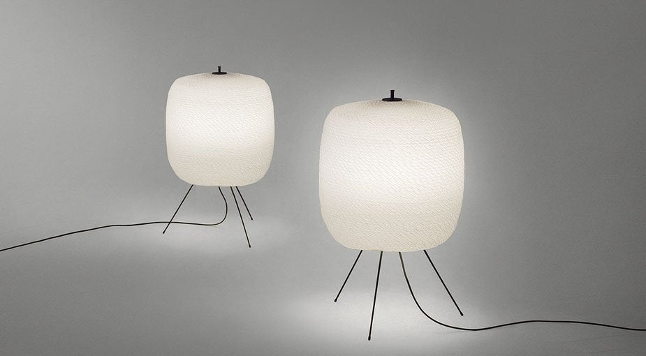 Characterized by its mysterious oriental flare coupled with the elegance of Italian design, the Shoji lamps add the perfect touch to an intimate ambiance. The lamps are made by sewing together semi-transparent polyester cord to create floor lamps that are resistant to atmospheric agents.