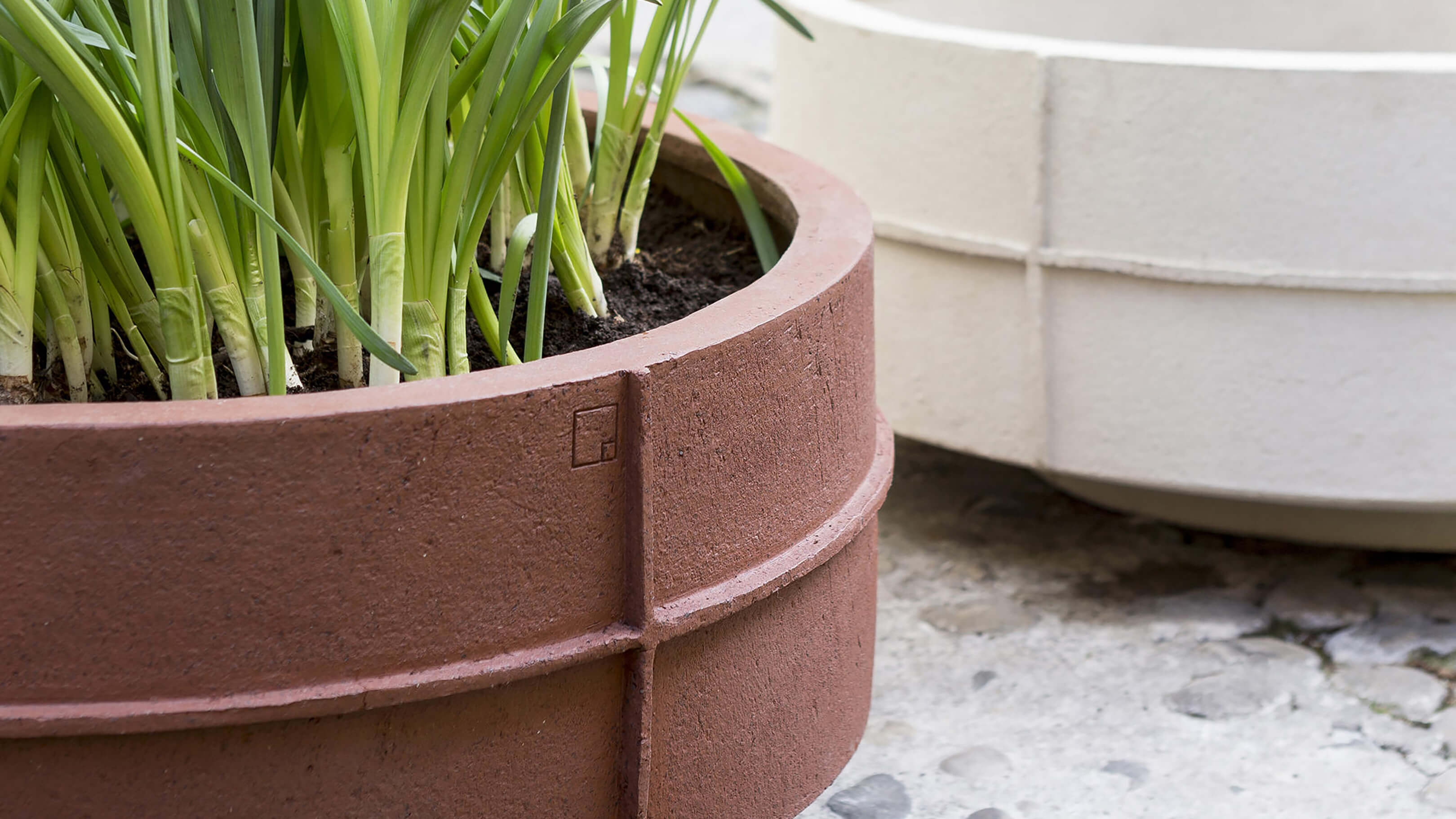 Designed with the rigorous geometrical precision of raised lines that follow the outside of its pleasingly curved form, the SJ from Vierkant highlights the robustness and versatility of clay, with large planters in two heights that can add a diversity of foliage to your outdoor space. Visually balanced with a high tactile surface, these planters add an air of sophistication to outdoor living, contemporary yet minimal, simple yet refined.