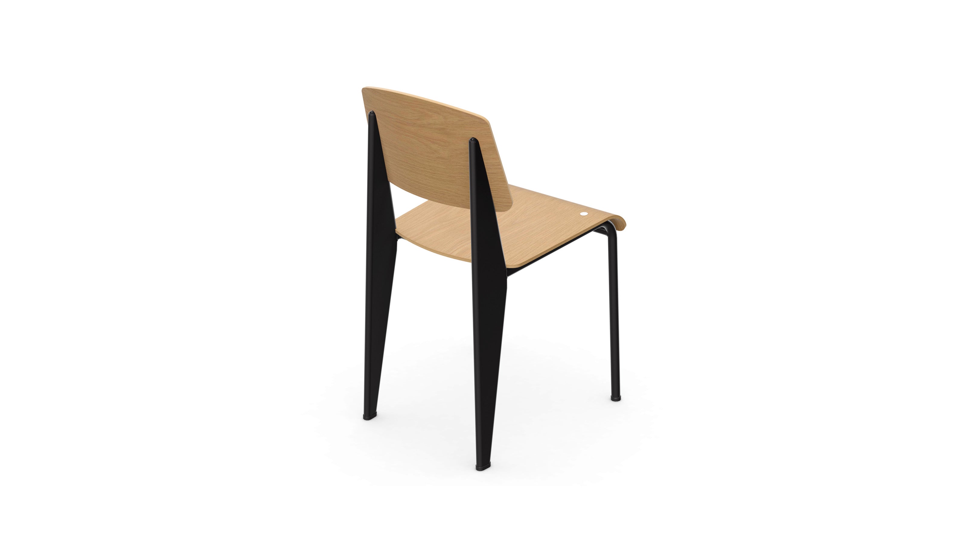 The Standard Chair, designed by Jean Prouvé and produced by Vitra, is an iconic example of functional design, first introduced in 1934. Recognizing that the back legs of a chair bear the most weight, Prouvé crafted the rear legs from hollow, load-bearing sections, while the front legs are made from lighter steel tubing. This innovative structural approach combines with a seat and backrest made from natural oak, and a sturdy brushed aluminum base, offering both durability and a sleek, modern aesthetic. The Standard Chair is versatile, fitting perfectly in dining rooms, offices, or any space requiring timeless design and reliable support.