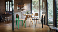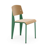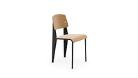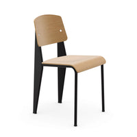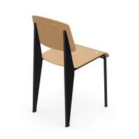 The Standard Chair, designed by Jean Prouvé and produced by Vitra, is an iconic example of functional design, first introduced in 1934. Recognizing that the back legs of a chair bear the most weight, Prouvé crafted the rear legs from hollow, load-bearing sections, while the front legs are made from lighter steel tubing. This innovative structural approach combines with a seat and backrest made from natural oak, and a sturdy brushed aluminum base, offering both durability and a sleek, modern aesthetic. The Standard Chair is versatile, fitting perfectly in dining rooms, offices, or any space requiring timeless design and reliable support.
