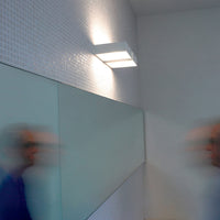 A minimalist wall sconce providing up and down light, Toast looks more like an architectural detail than a decorative fixture. Available in polished chrome plate, metal gray, matt white or matt nickel plated, it has the perfect finish to compliment any interior. Illumination is created by a 100 watt halogen bulb.
