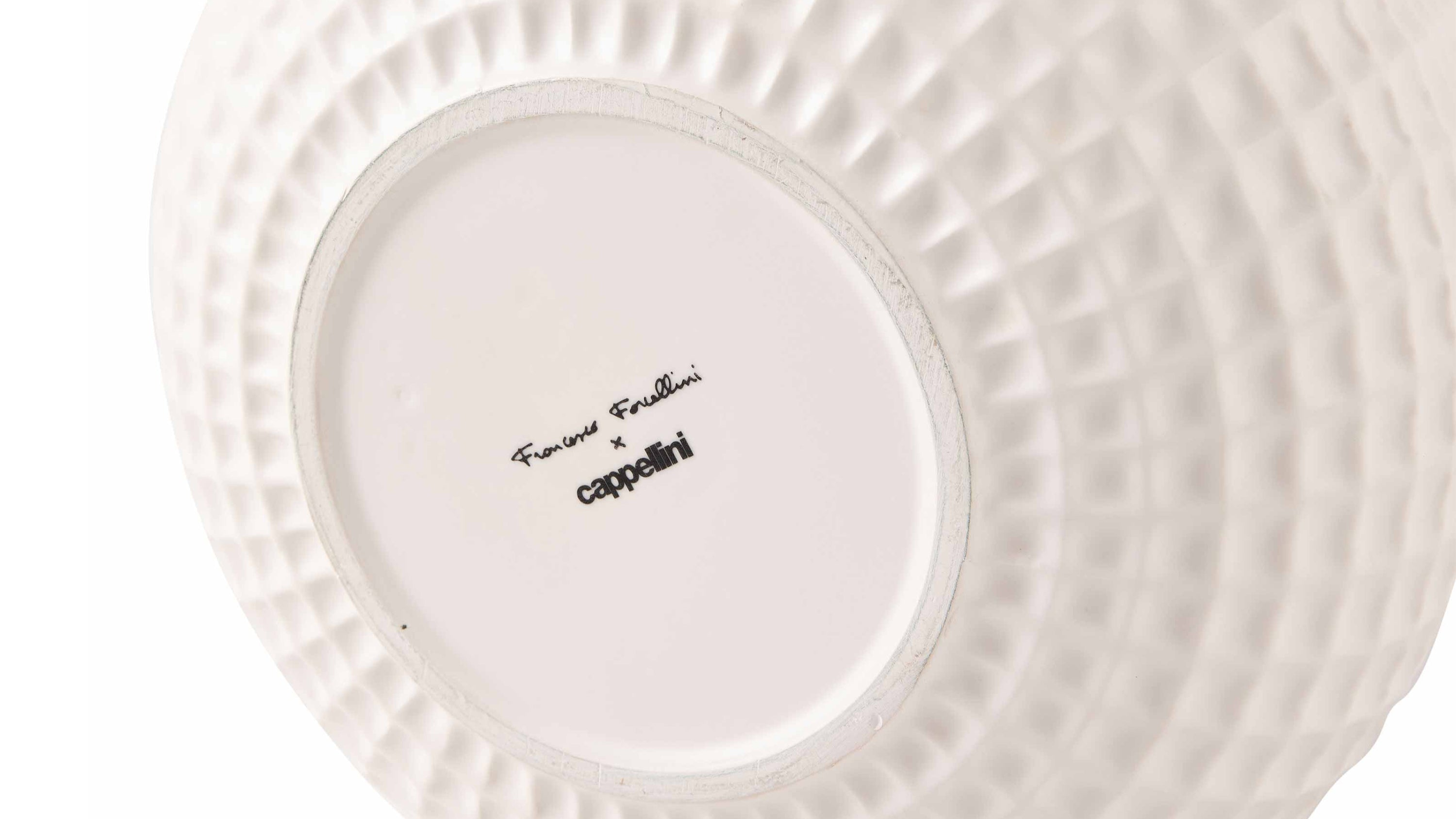 Experience the refined elegance of the Trace Vase, a contemporary creation by renowned designer Francesco Forcellini for Cappellini. This vase combines advanced 3D printing with traditional porcelain craftsmanship, resulting in a distinctive texture that showcases the material's inherent beauty. Ideal for upscale interiors, it makes a striking statement either empty or adorned with flowers. Key features include Italian craftsmanship, a textured exterior for visual depth, a matte white finish externally, and a polished enamel interior coating. Various sizes and configurations available.