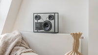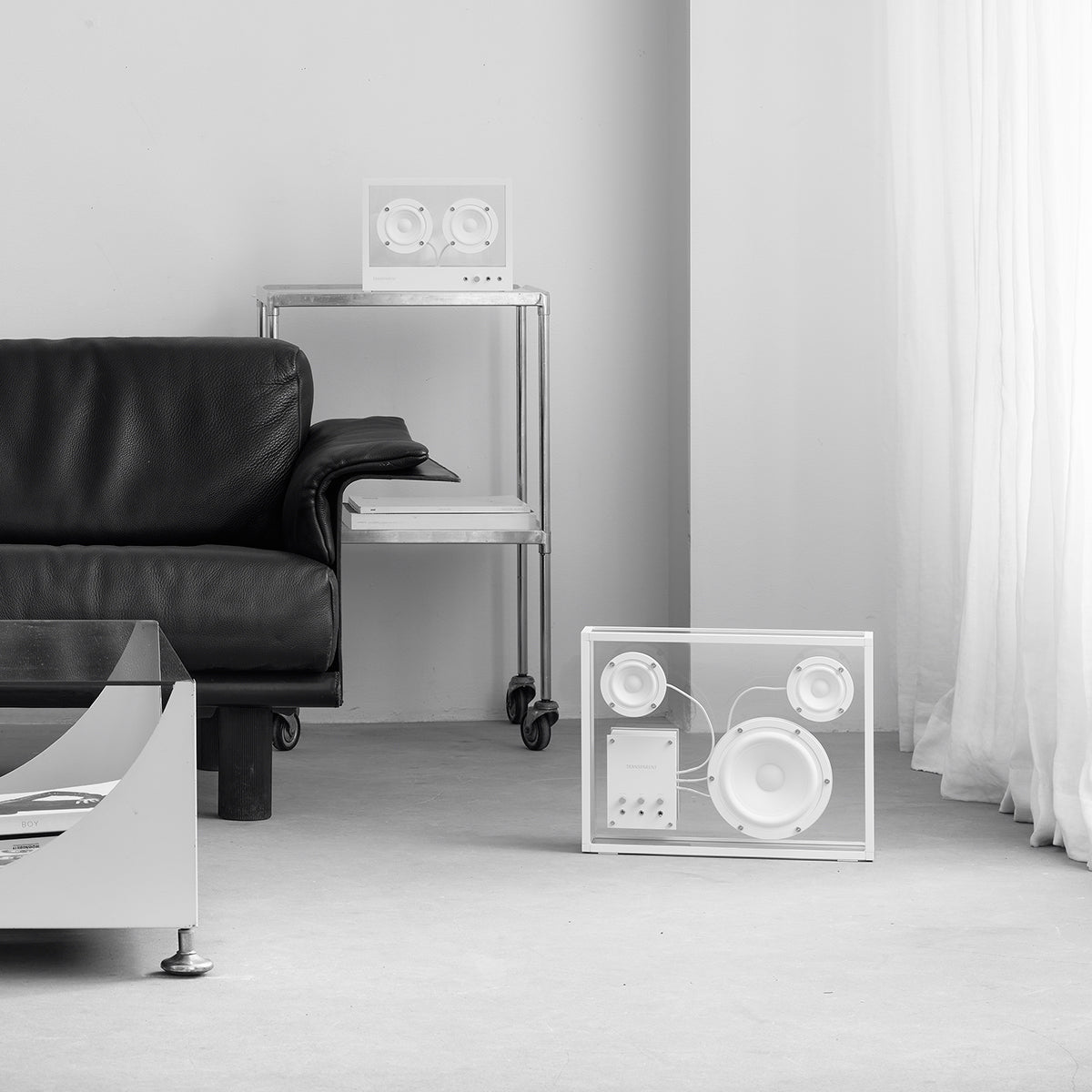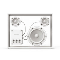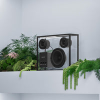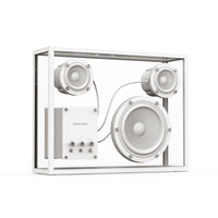 Built primarily from robust, sound friendly tempered glass with an aluminum frame in black or white, this revolutionary speaker is designed to be displayed proudly and visibly in any space that welcomes the modern charm of a minimalist aesthetic, elegant, discreet, and urbane. Complete with built-in Bluetooth and a USB port that allows for WiFi-based streaming solutions, the Transparent Speaker is expertly crafted to last a lifetime, elevating any space with timeless beauty and exceptional sound.