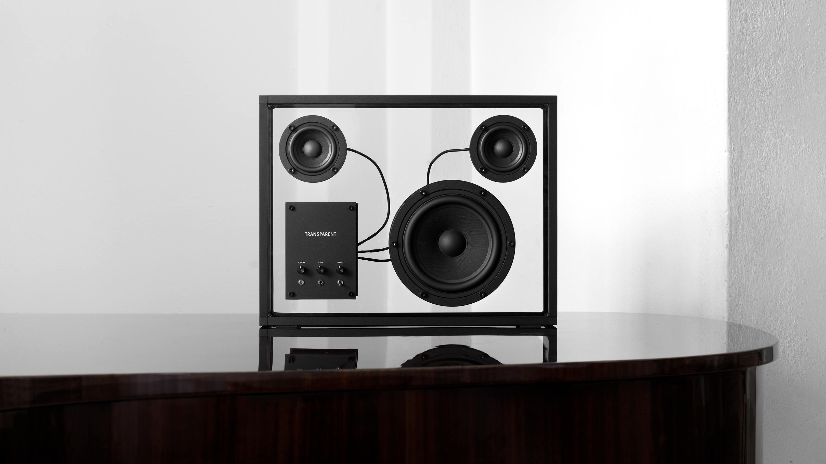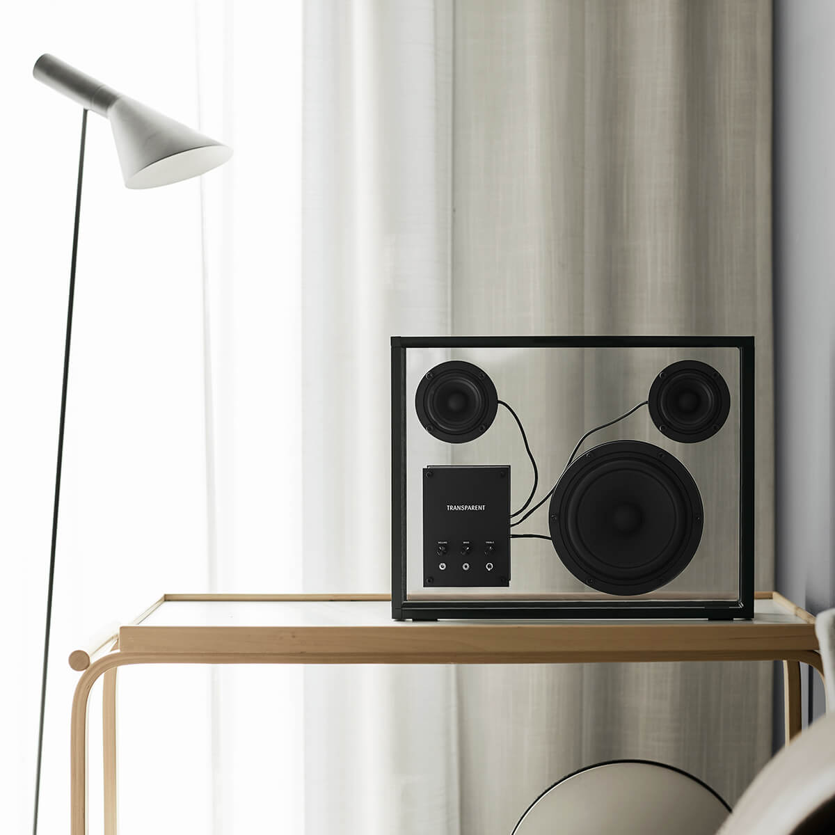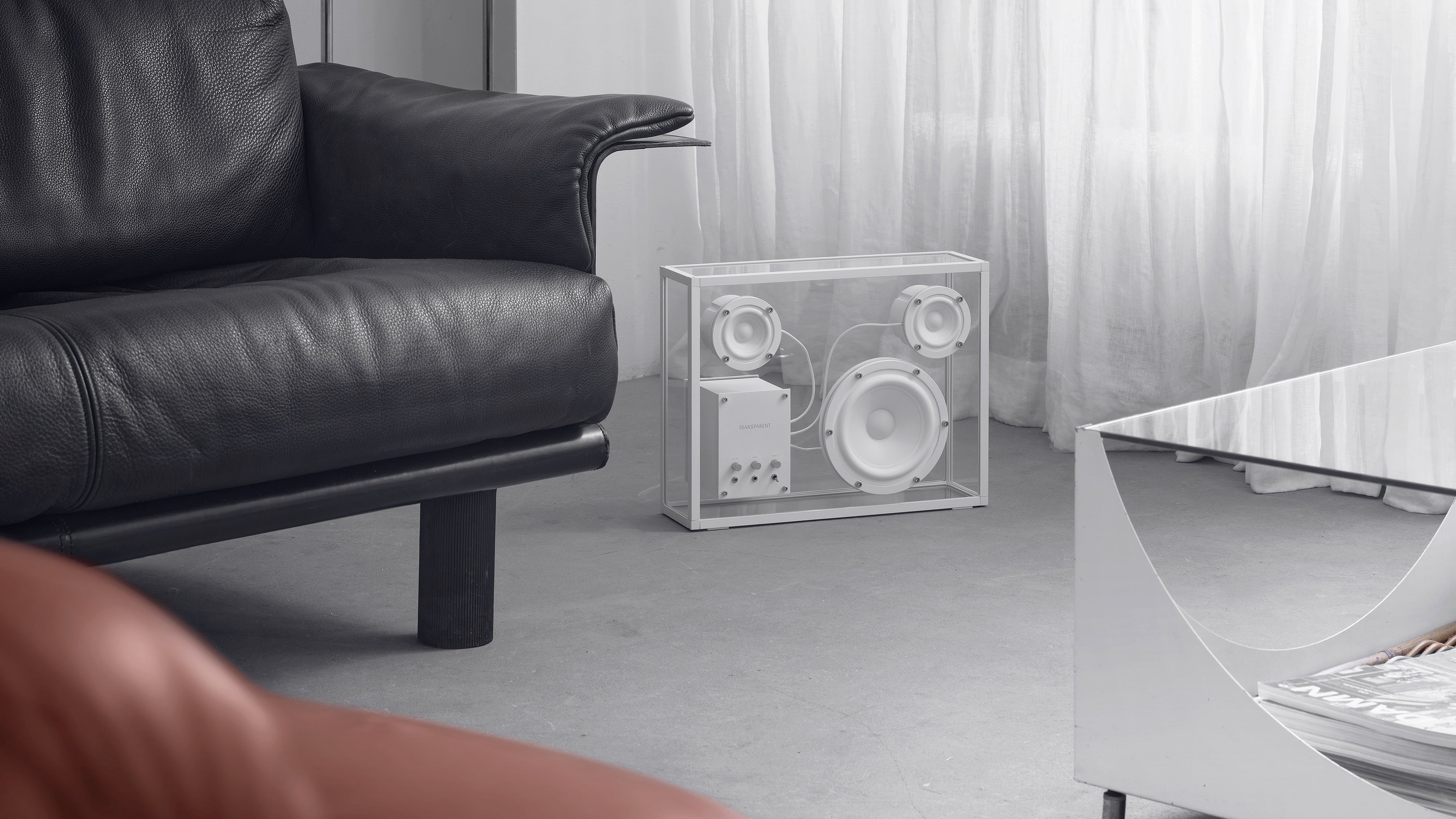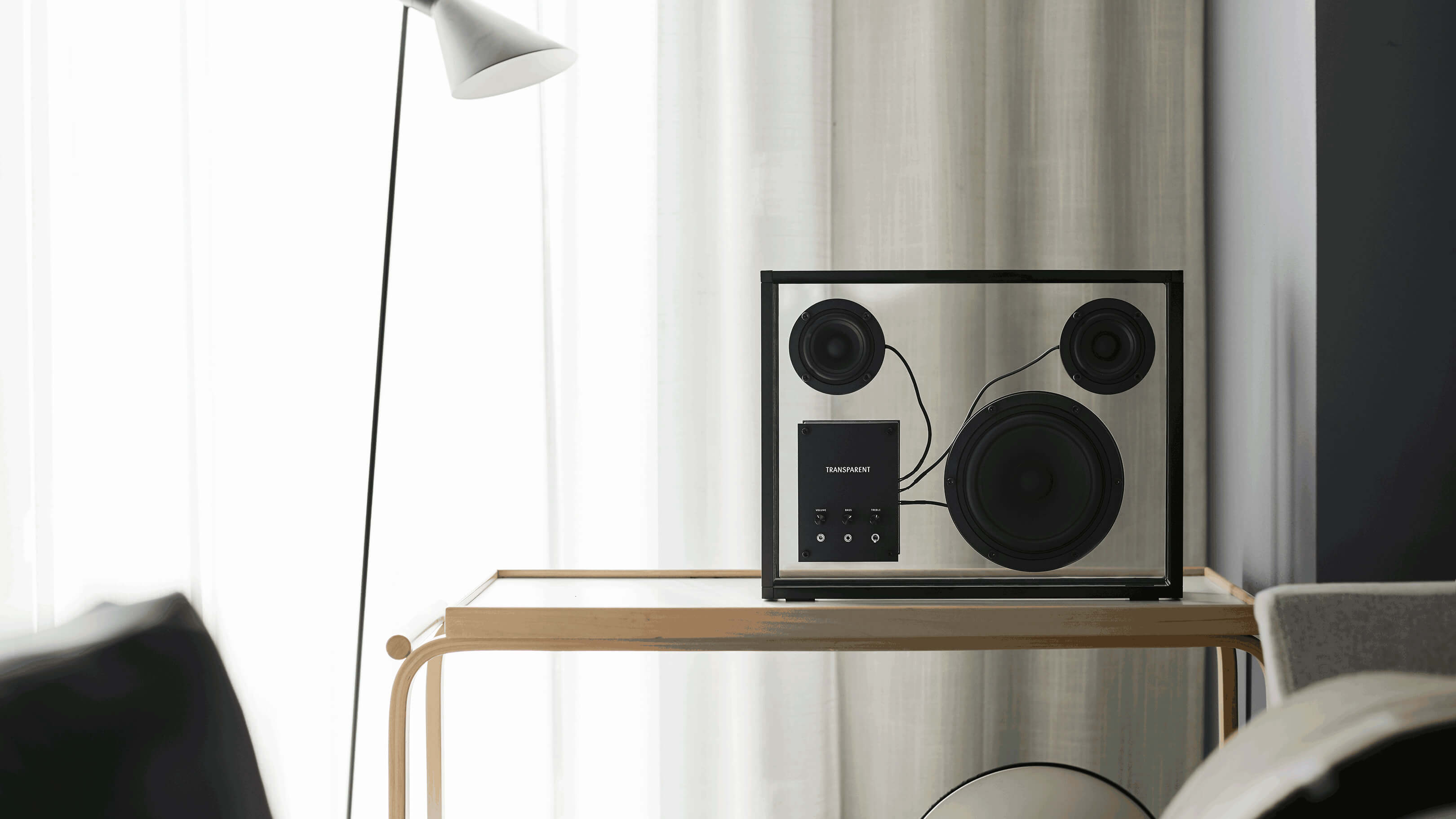 Beaming with the straightforward simplicity and serene sophistication of sinuous, striking Scandinavian design, the Transparent Speaker is as visually enthralling as it is a technical marvel of auditory pleasure, a statement piece whose internal devices appear to float in space with poetic prowess and deliver an unmatched ambiance of sound for a high-end aural experience that harmonizes effortlessly with any interior.