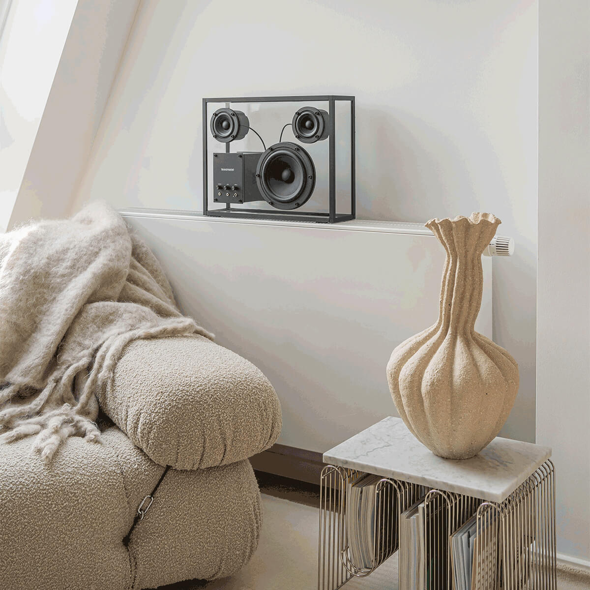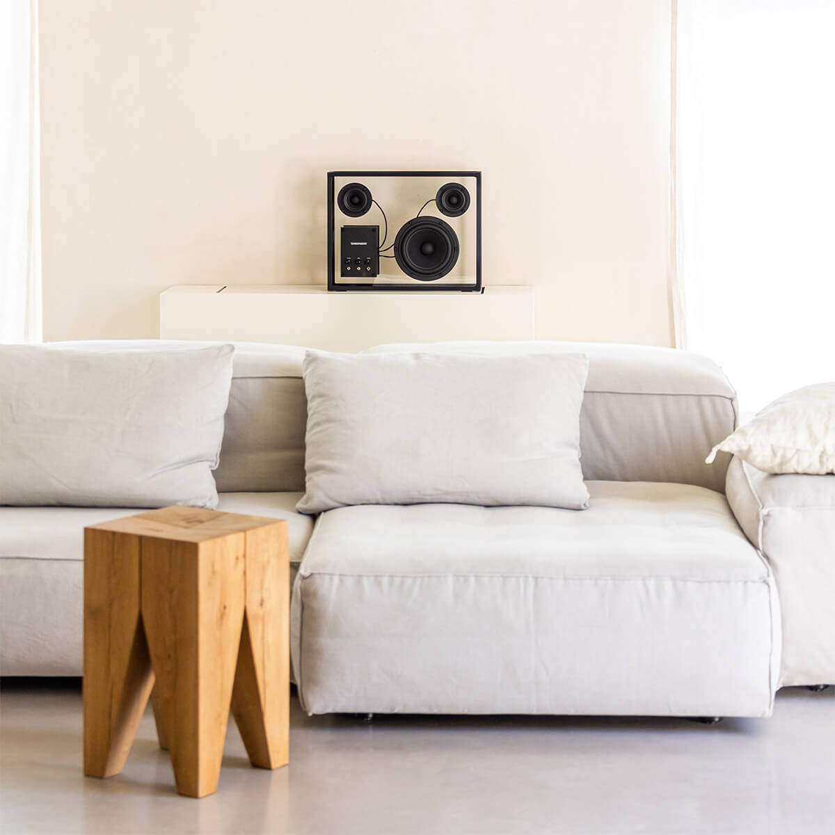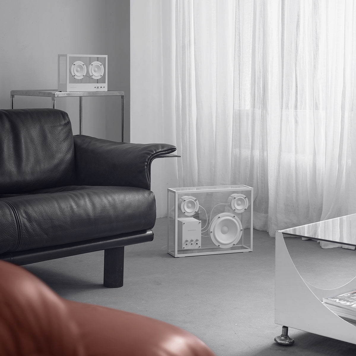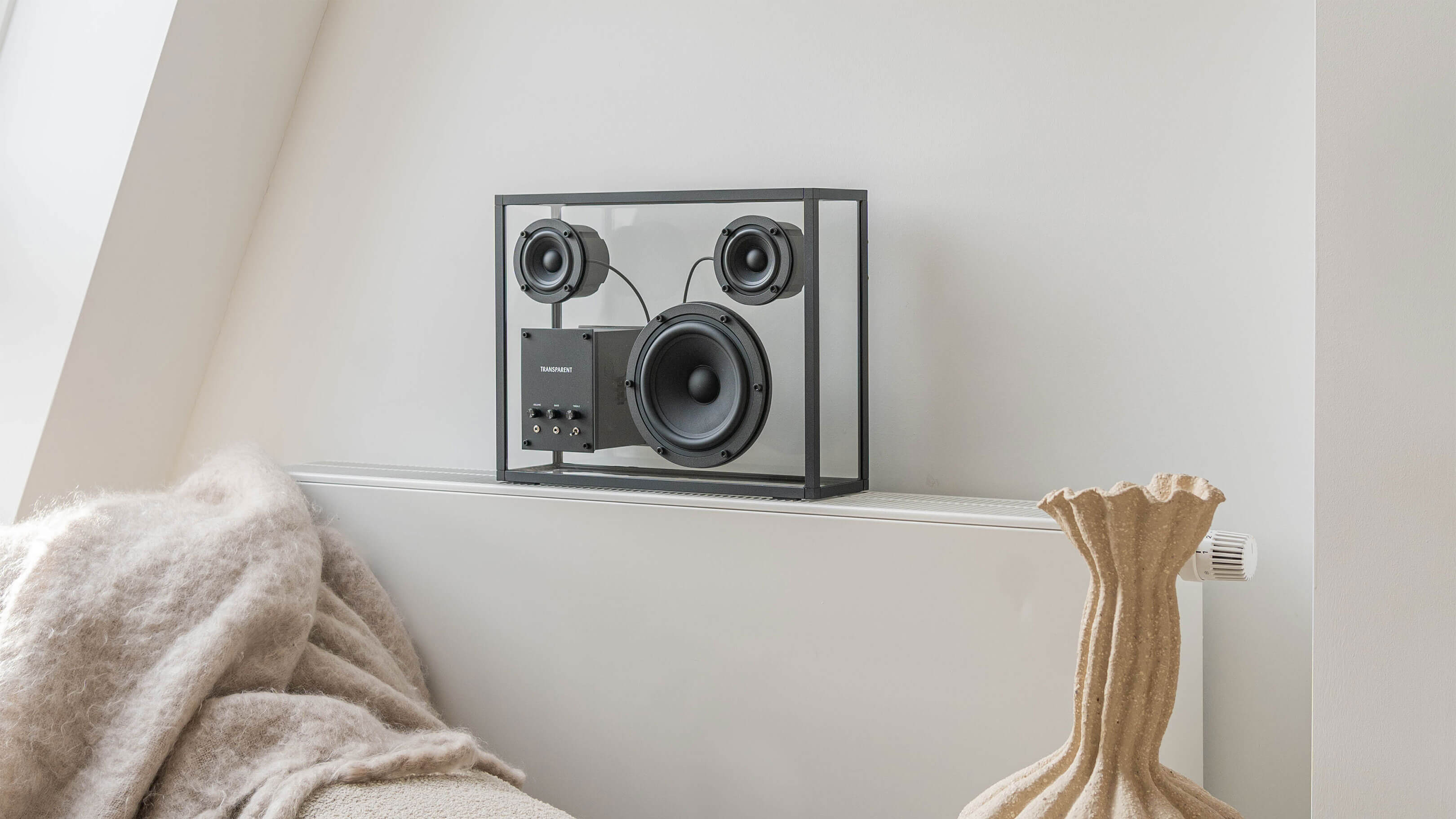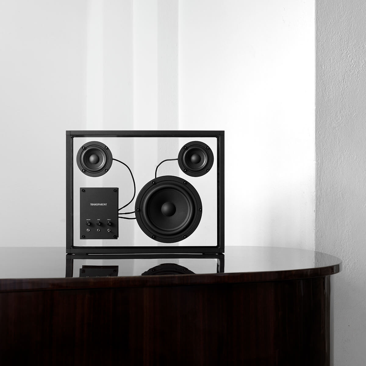 Beaming with the straightforward simplicity and serene sophistication of sinuous, striking Scandinavian design, the Transparent Speaker is as visually enthralling as it is a technical marvel of auditory pleasure, a statement piece whose internal devices appear to float in space with poetic prowess and deliver an unmatched ambiance of sound for a high-end aural experience that harmonizes effortlessly with any interior.