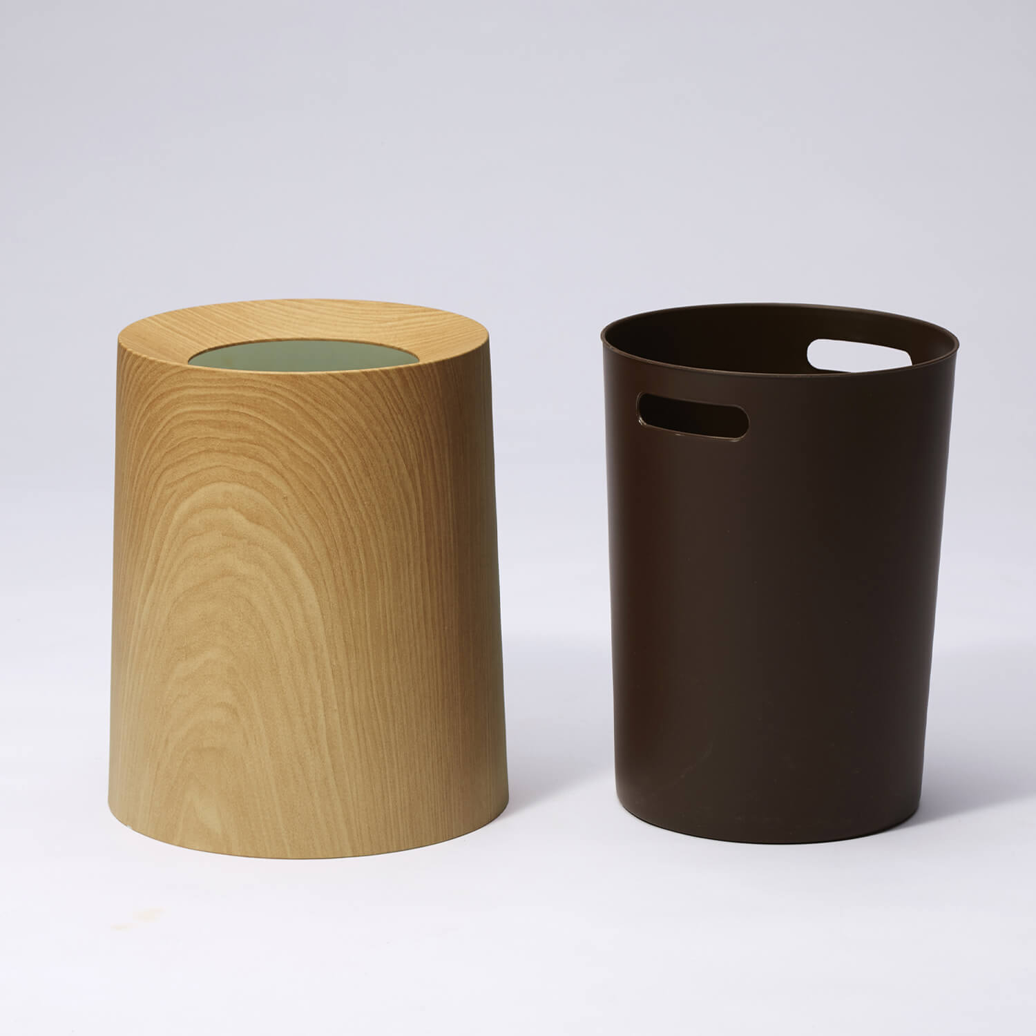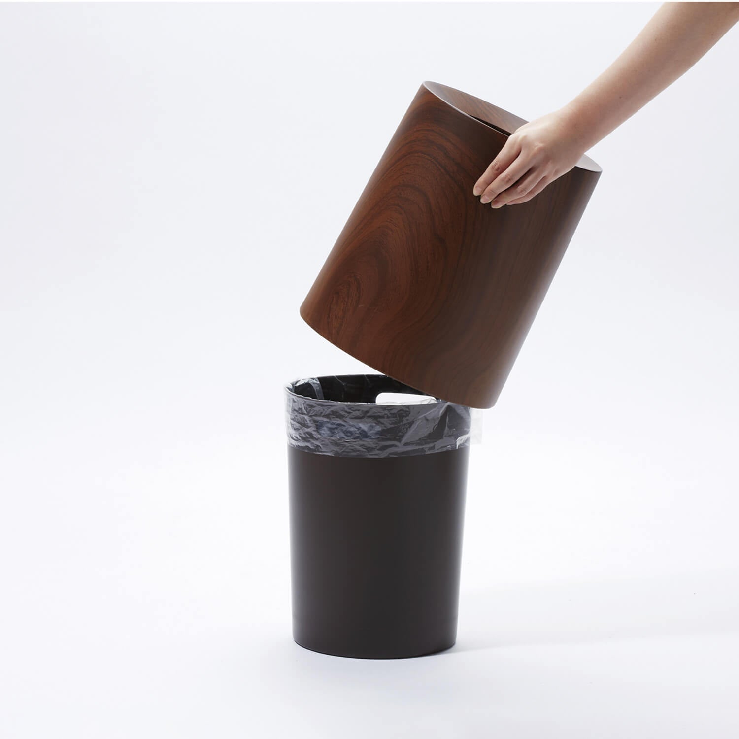 - Set of two pieces works together so that the inner, hidden piece holds the bag and the outer piece conceals the unsightly trash bag