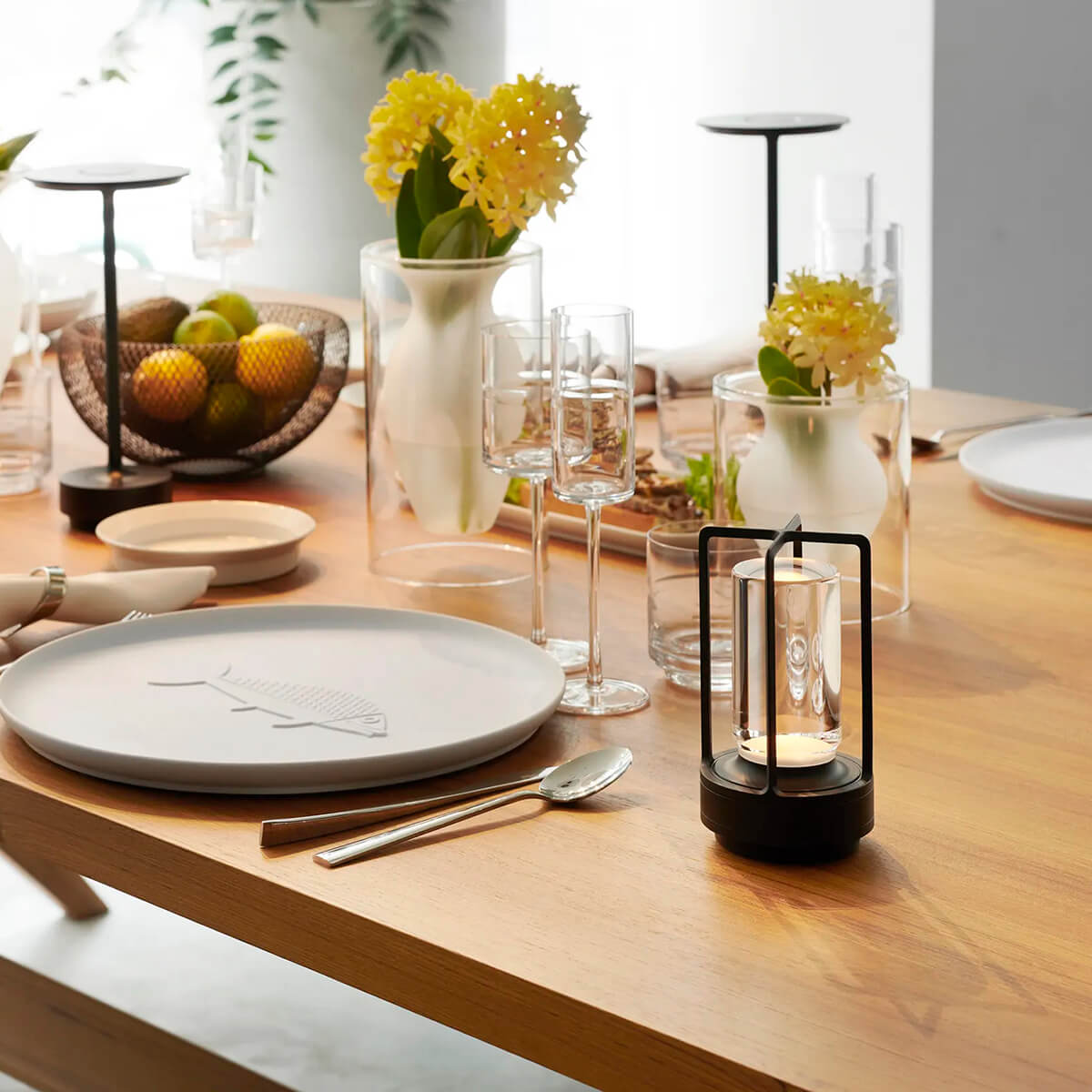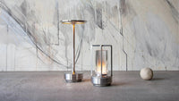 Designed by the soulful and thought-provoking Japanese designer Nao Tamura for Japanese lighting brand Ambientec, this cordless and waterproof light is as technologically innovative as it is visually alluring, created to establish an intense emotional bond with each user as a gentle touch is used to turn the lamp on and off, and move it through four phases of acute, high quality illumination made possible with a newly developed LED light source, from a soft glow as subtle as candlelight to a penetrating brilliance perfect for entertaining.