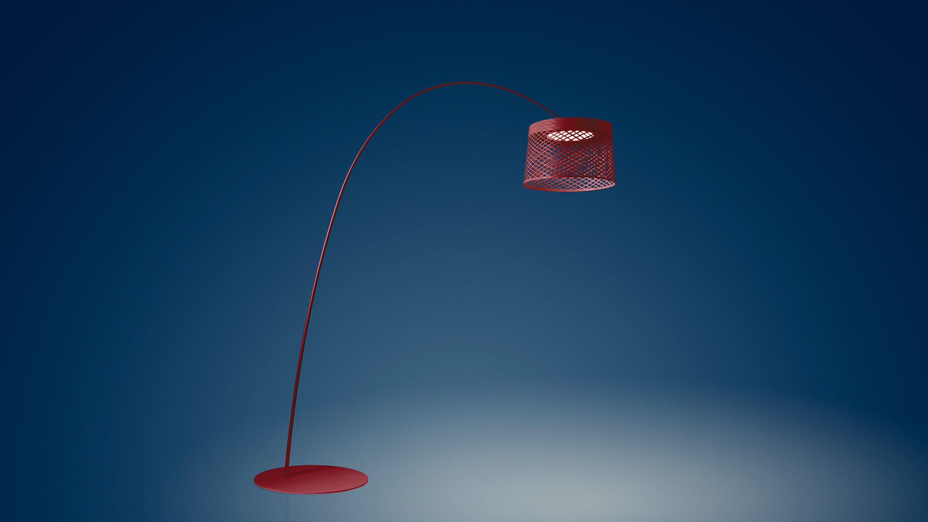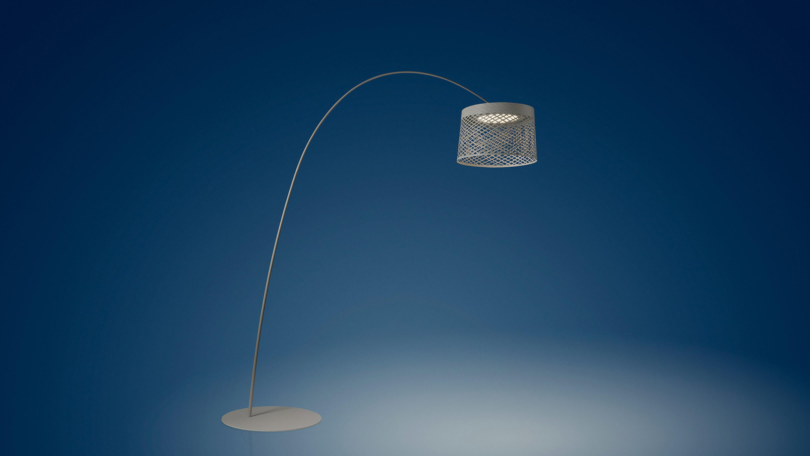 A fine arched line, a flexible sign which by magic suspends a large diffuser in mid-air: this is Twiggy, a floor lamp that meets multiple setting and lighting requirements.