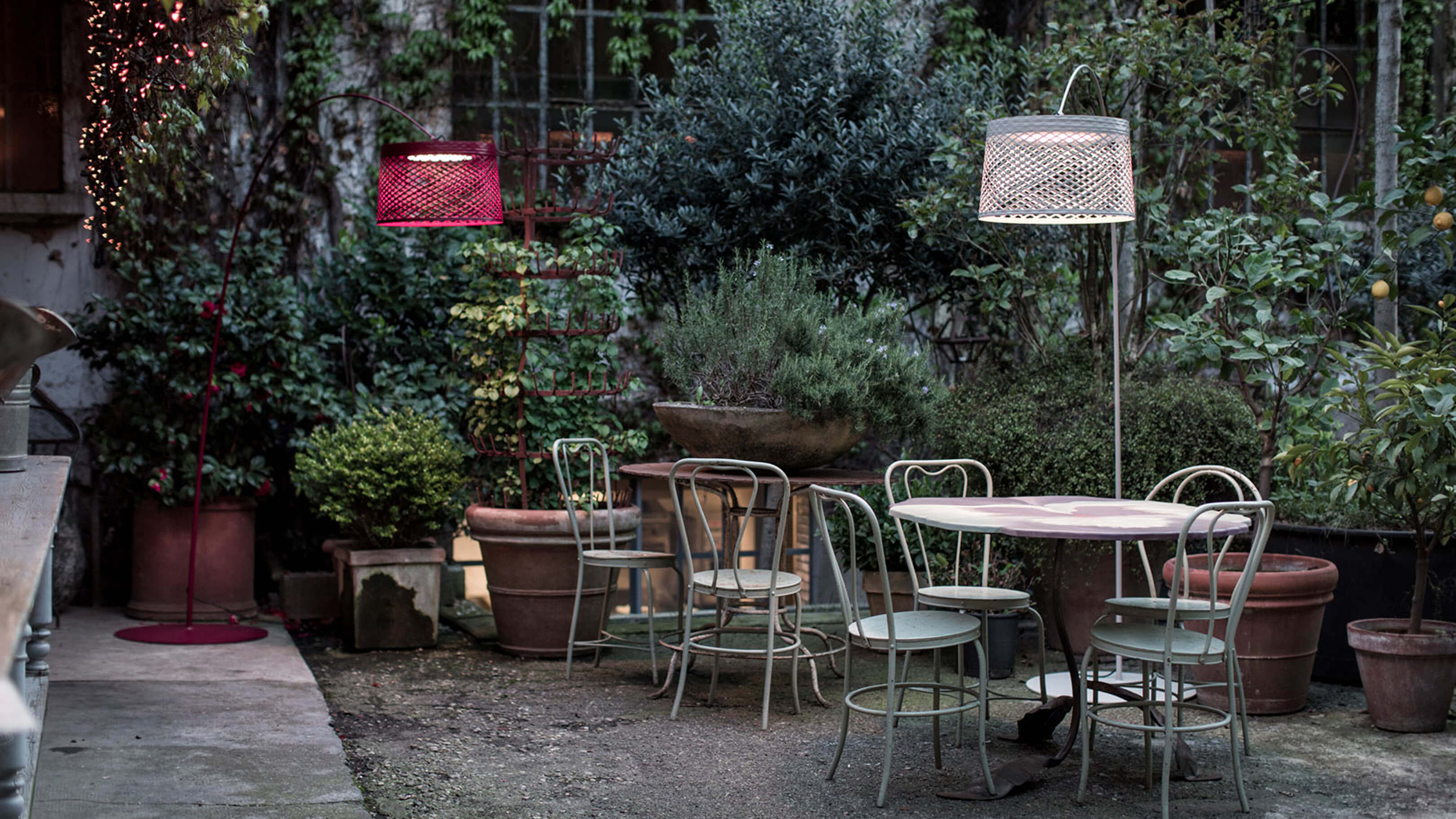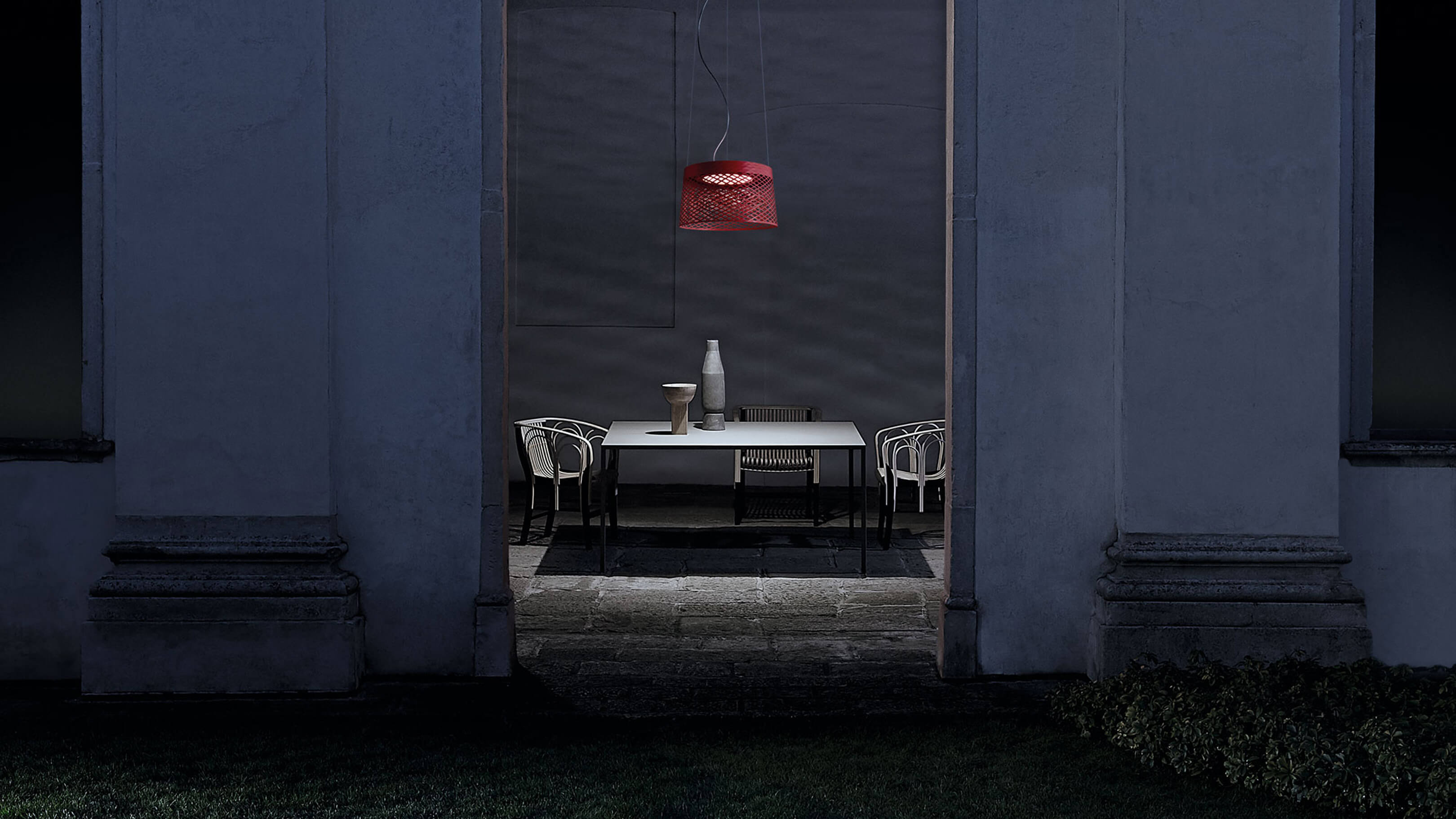 A lamp-icon in its outdoor version. Based on the image of a fishing rod as it curves, Twiggy Grid embodies its flexibility, clarity and strength, gathering them into an object with a vivid personality.