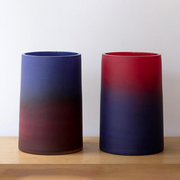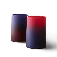 The VCE VCA Vase is gracious and colorful. These stately mouth-blown objects are covered with colored glass powder. Both pieces with a red and blue interior are each other’s opposite, and therefore a perfect match.