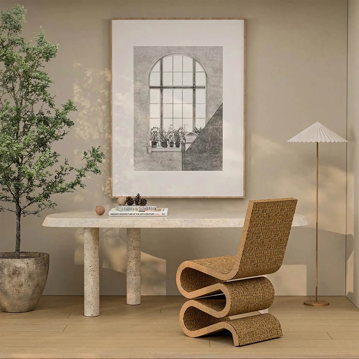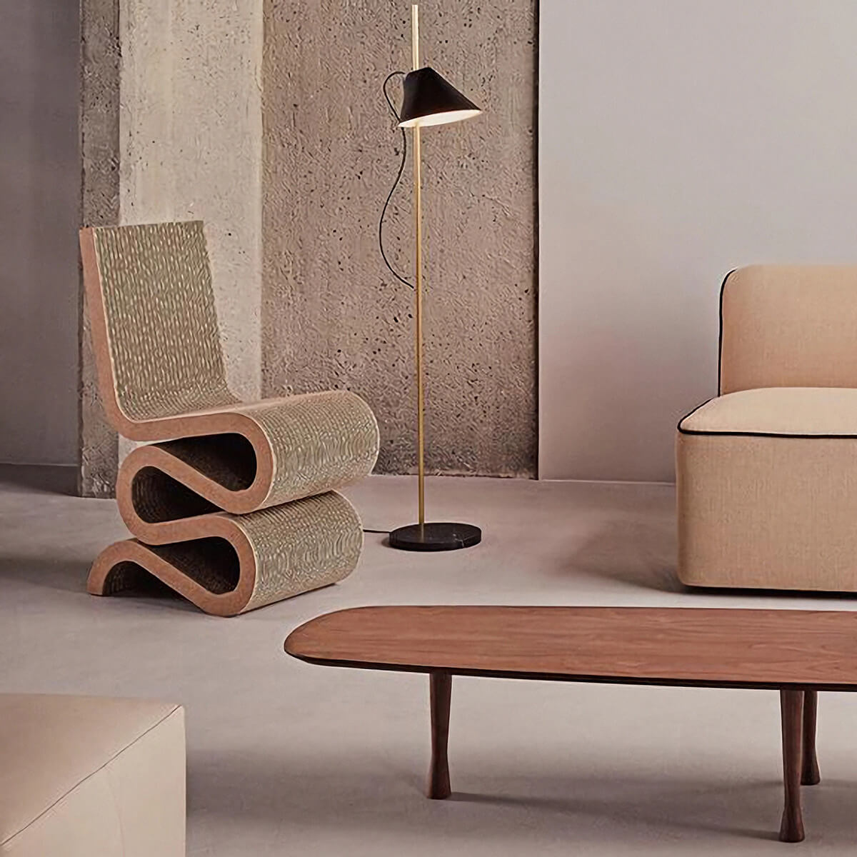 The architect Frank Gehry is known for his use of unusual materials. With his furniture series ‘Easy Edges’, he succeeded in bringing a new aesthetic dimension to such an everyday material as cardboard.