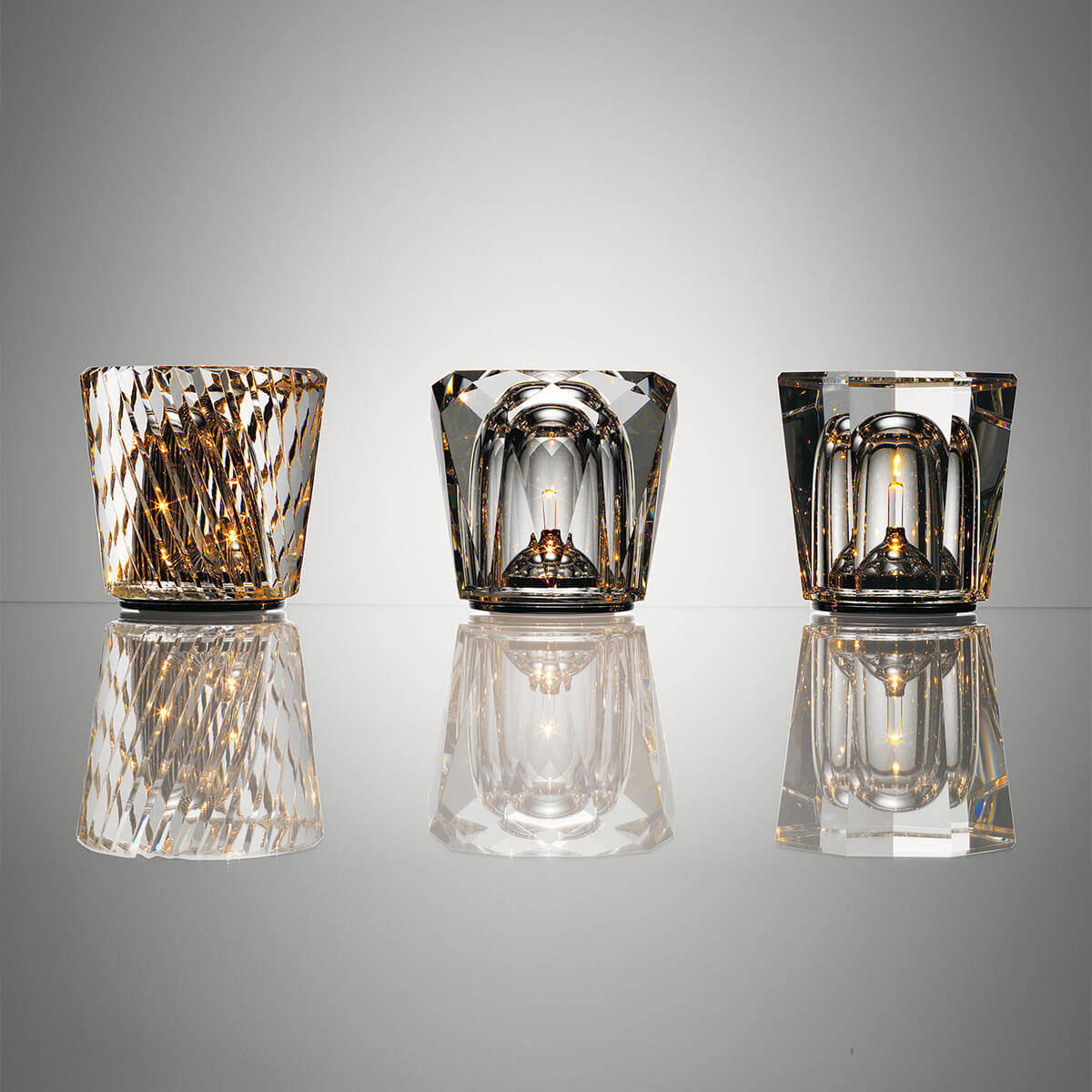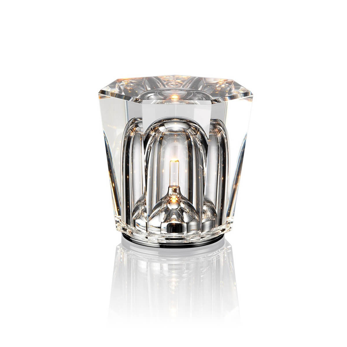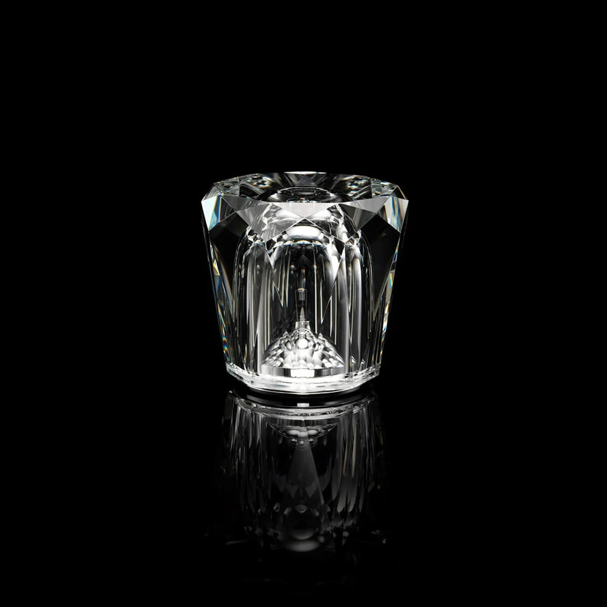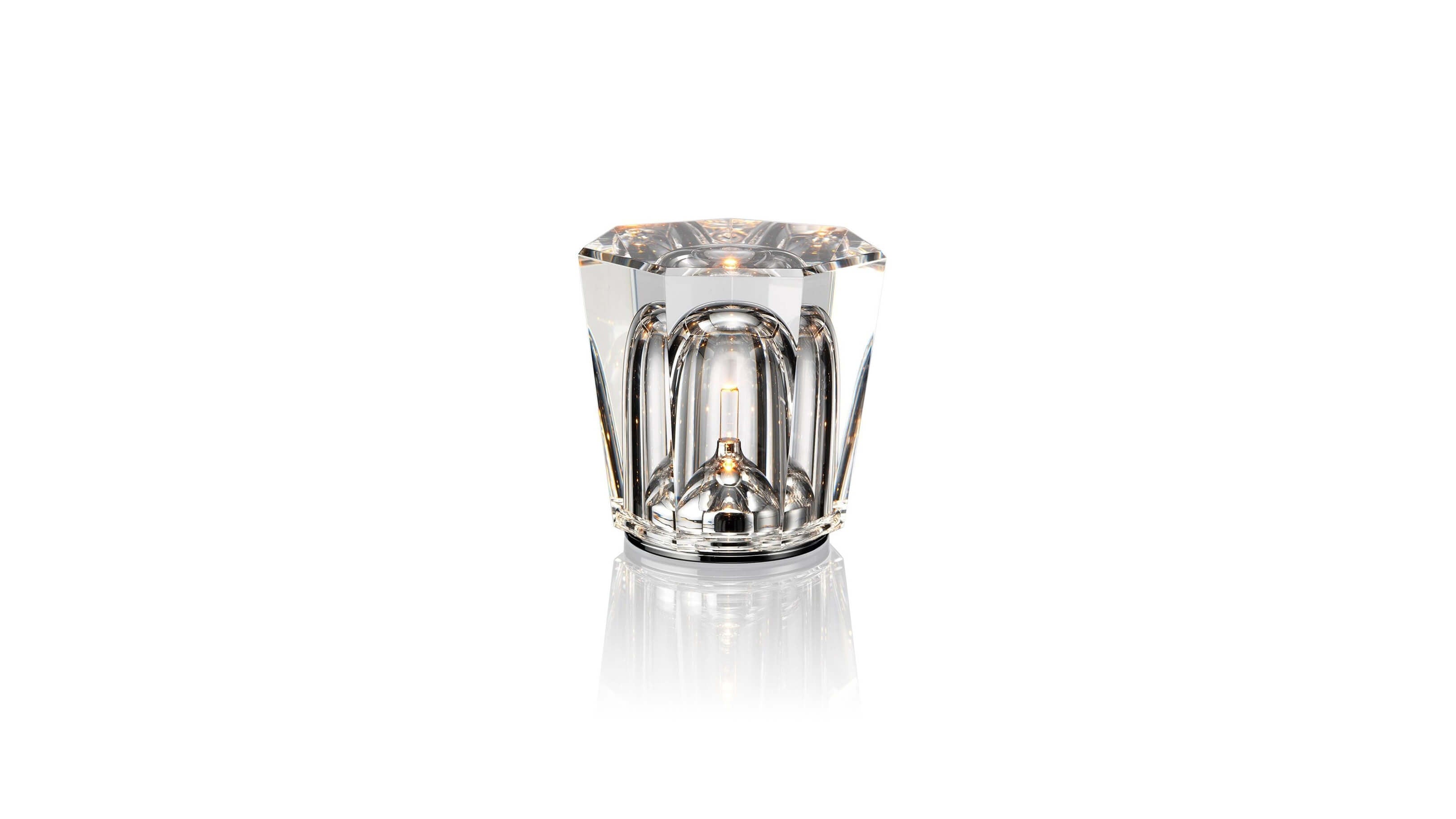The Xtal Acrux Wireless LED lamp is a hand-cut and polished crystalline table lamp that casts a spell on the night. This superior level of craftsmanship allows the lamp to produce its signature tapestry of light, an ethereal radial flare and icy glimmer. The light emitted by the Xtal is beautifully refracted in every direction, thanks to the incorporation of a double-sided LED and a metal reflector that has been polished to a mirror-like finish. The brightness of the Xtal can be adjusted to one of four levels, allowing it to provide a light that suits the space, and since the lamp is cordless and compact, it can also be positioned anywhere. With IPX6 water resistance, the Xtal can even enhance a soak in the bath or a rainy night on the balcony.