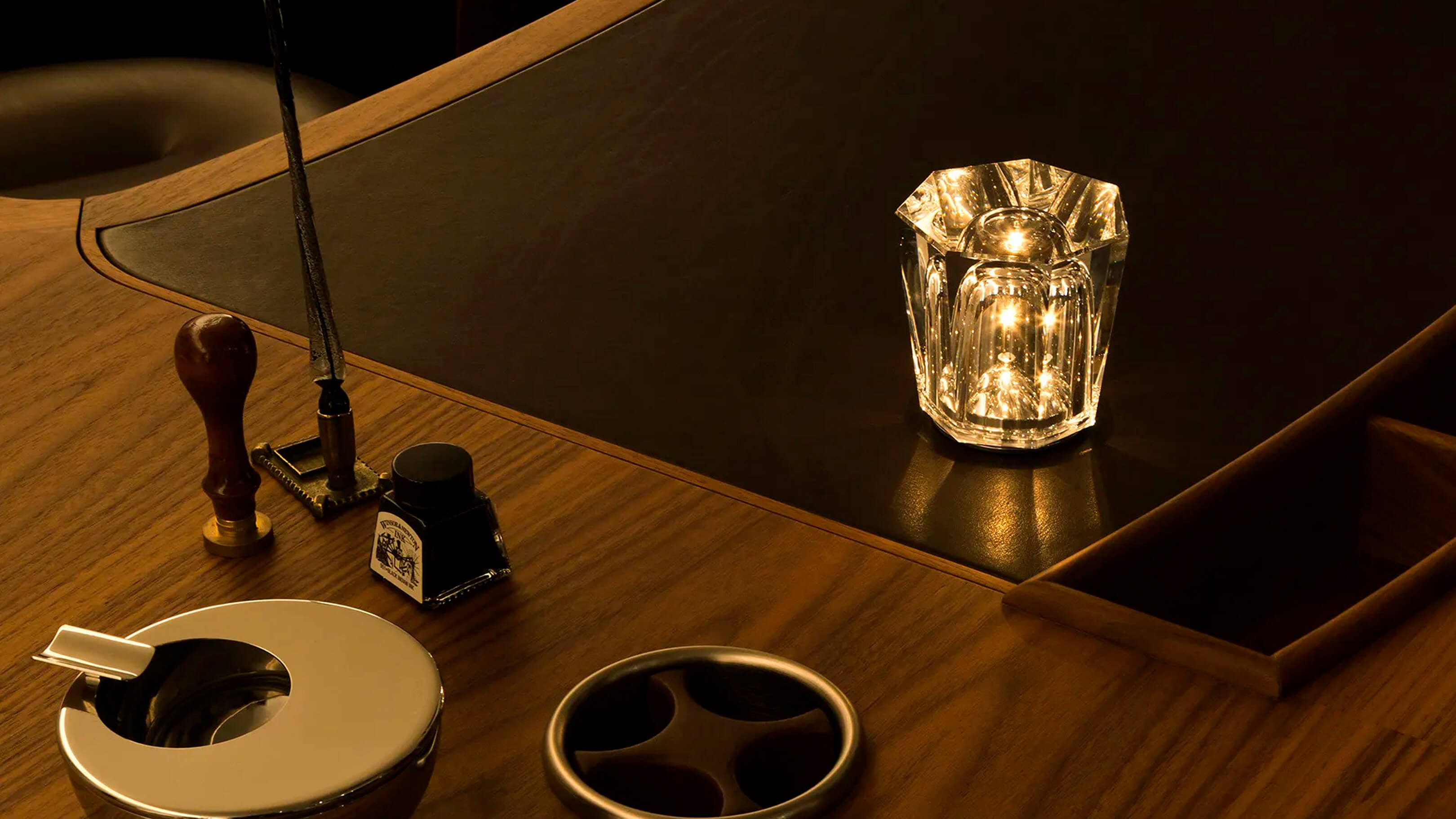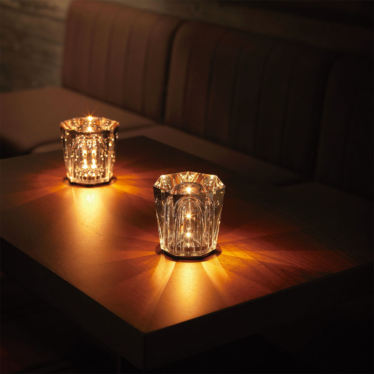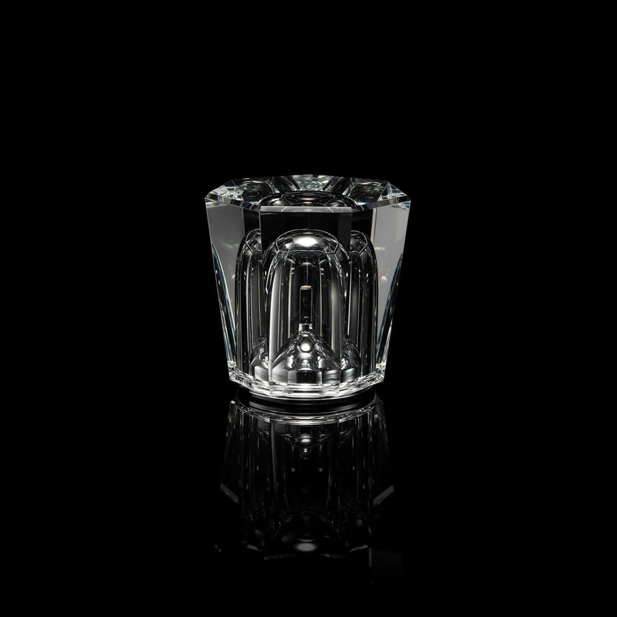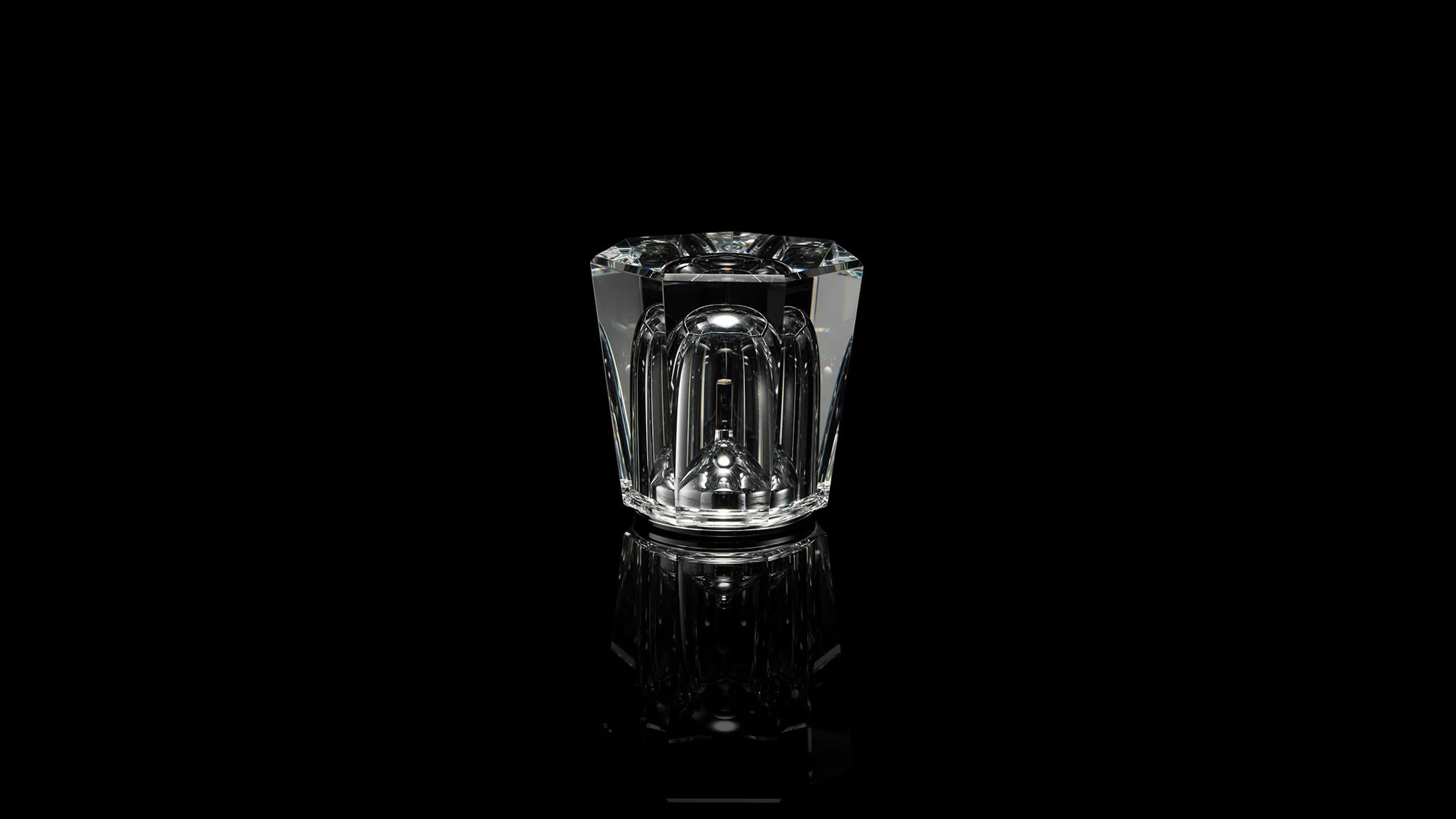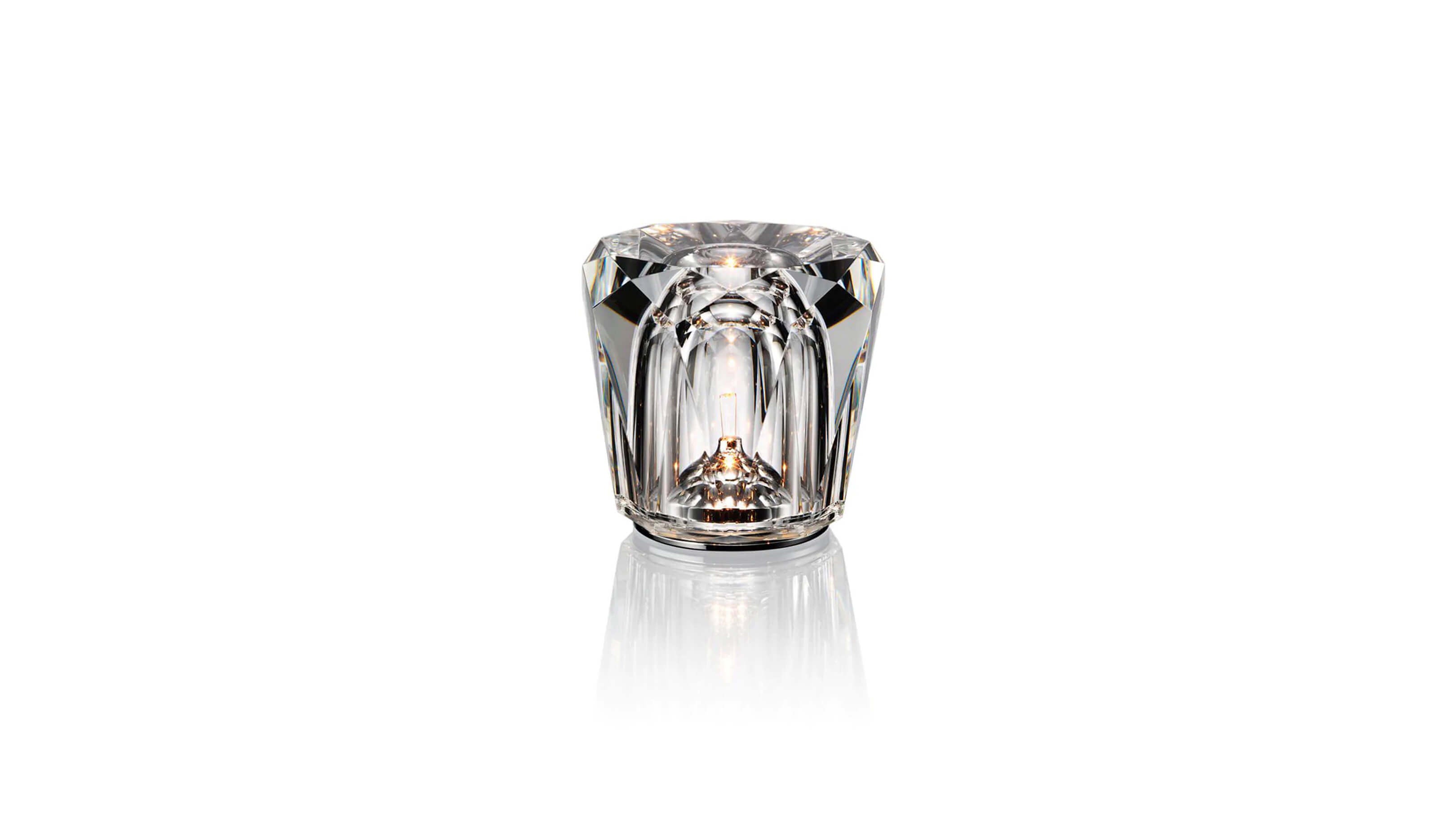 The Xtal Acrux Wireless LED lamp is a hand-cut and polished crystalline table lamp that casts a spell on the night. This superior level of craftsmanship allows the lamp to produce its signature tapestry of light, an ethereal radial flare and icy glimmer. The light emitted by the Xtal is beautifully refracted in every direction, thanks to the incorporation of a double-sided LED and a metal reflector that has been polished to a mirror-like finish. The brightness of the Xtal can be adjusted to one of four levels, allowing it to provide a light that suits the space, and since the lamp is cordless and compact, it can also be positioned anywhere. With IPX6 water resistance, the Xtal can even enhance a soak in the bath or a rainy night on the balcony.