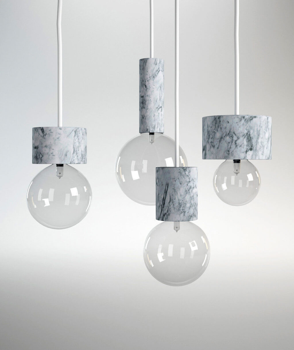 Like their first collection, the 11 Boxes storage units, Marble Lights are refined and reductionist, drawing attention to shape and form by including only those elements which are necessary. Blown-glass spheres with marble cylinders summon the archetypical incandescent light bulb, while weight, volume and material commune in simple yet surprising ways.