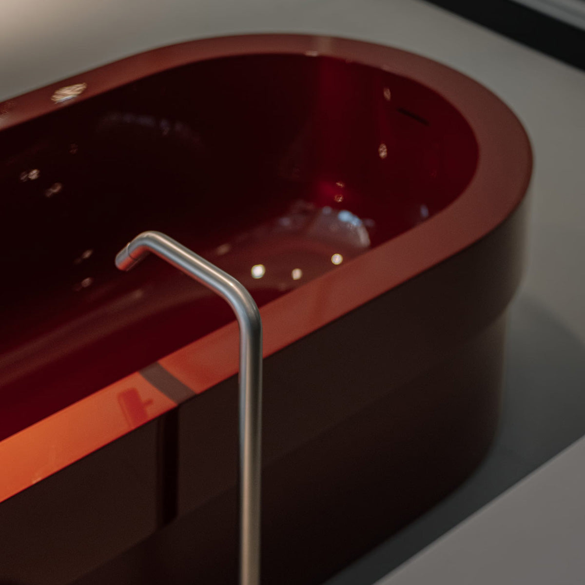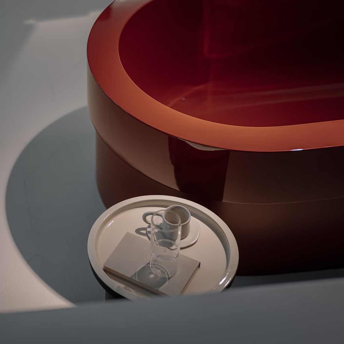 Полностью белая ванна Exmar Inout с округлой внутренней частью и невероятно универсальным дизайном доступна в различных вариантах: отдельно стоящая, для угловой, врезной или встраиваемой установки.