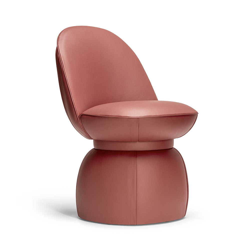 The Leplì Chair, designed by Kensaku Oshiro, seamlessly merges Poltrona Frau’s esteemed craftsmanship with style-driven tailoring. Its elegant curves, inspired by the female form, are accentuated by traditional stitching, delicate pleats, and a slender belt that cinches the waist. The angled, cushioned backrest wraps around the seat, providing welcoming comfort. Lightweight and compact, this chair reflects a harmonious blend of proportions, meticulous details, and quality materials, embodying subtle elegance and refined sophistication. Features Made in Italy Expertly handcrafted Softly padded for both comfort and support.