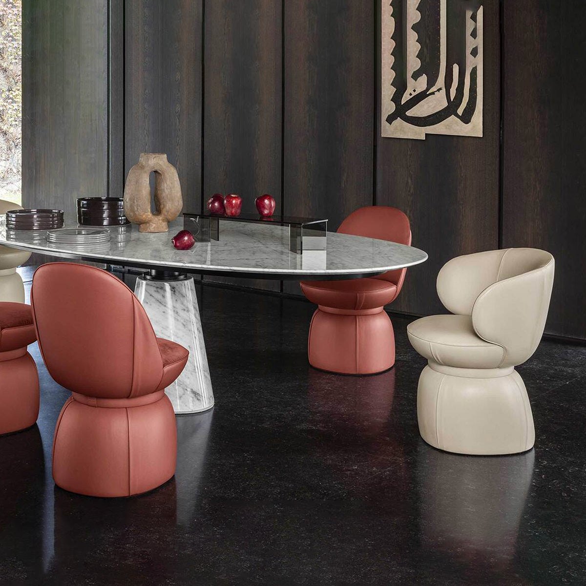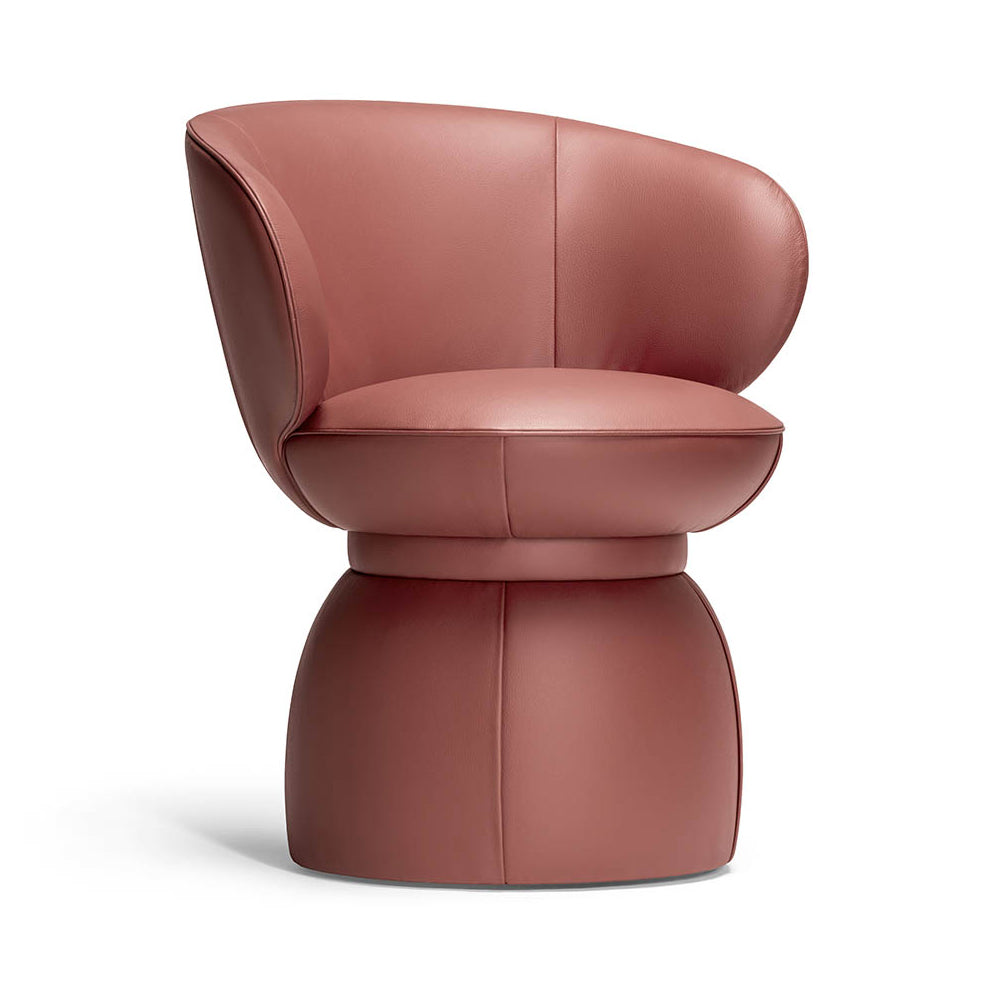 The Leplì Small Armchair, designed by Kensaku Oshiro, beautifully combines Poltrona Frau’s craftsmanship with fashion-inspired design. Its softly pleated curves evoke the feminine form, enhanced by a slim belt that defines the waistline. The angled, cushioned backrest delivers welcoming comfort, while the chair’s delicate, compact silhouette highlights a perfect proportion, meticulous stitching, and premium materials. This piece exudes subtle elegance in every element. Features include Italian artisanal craftsmanship, gentle padding for balanced support, and a space-efficient design ideal for a vanity or entryway setting.