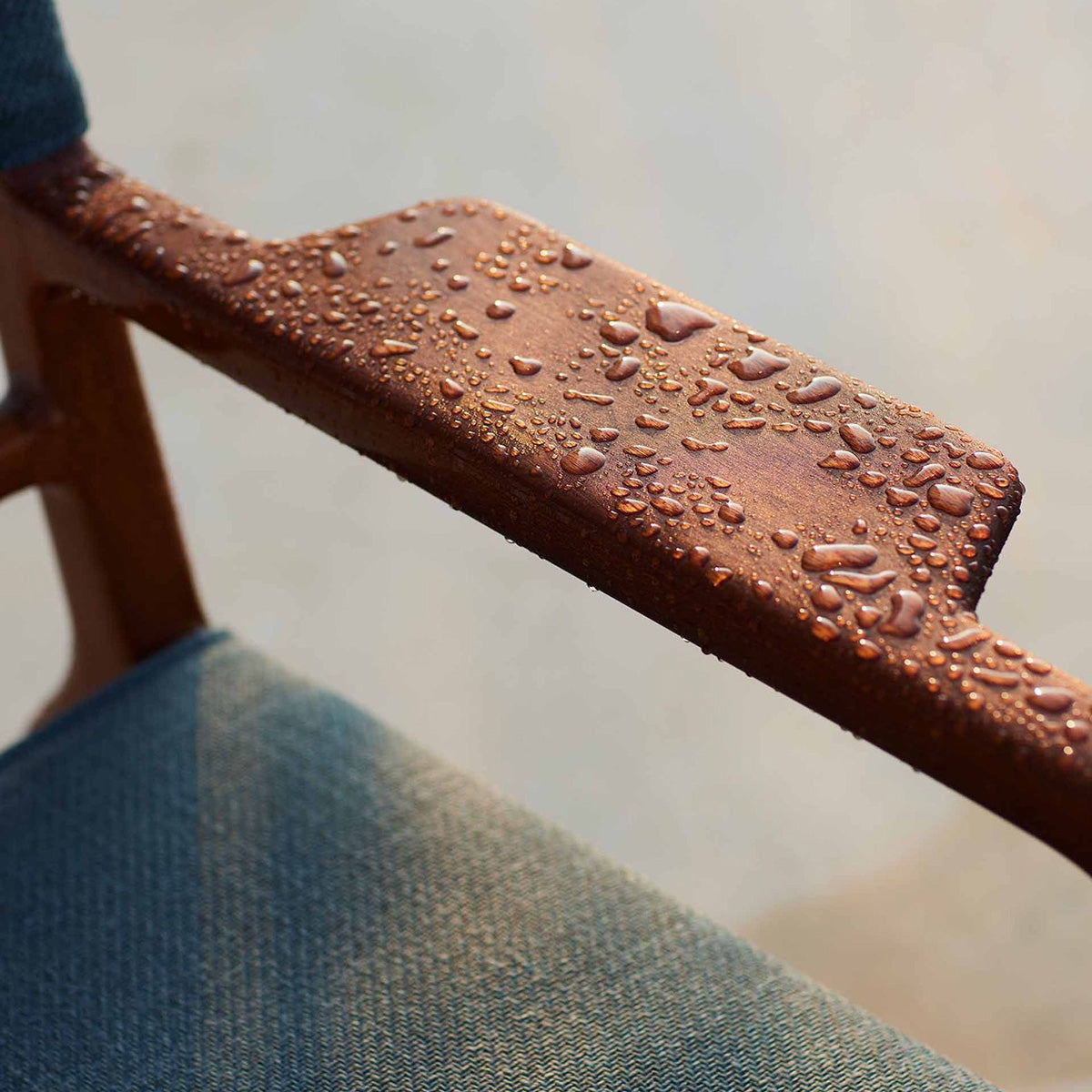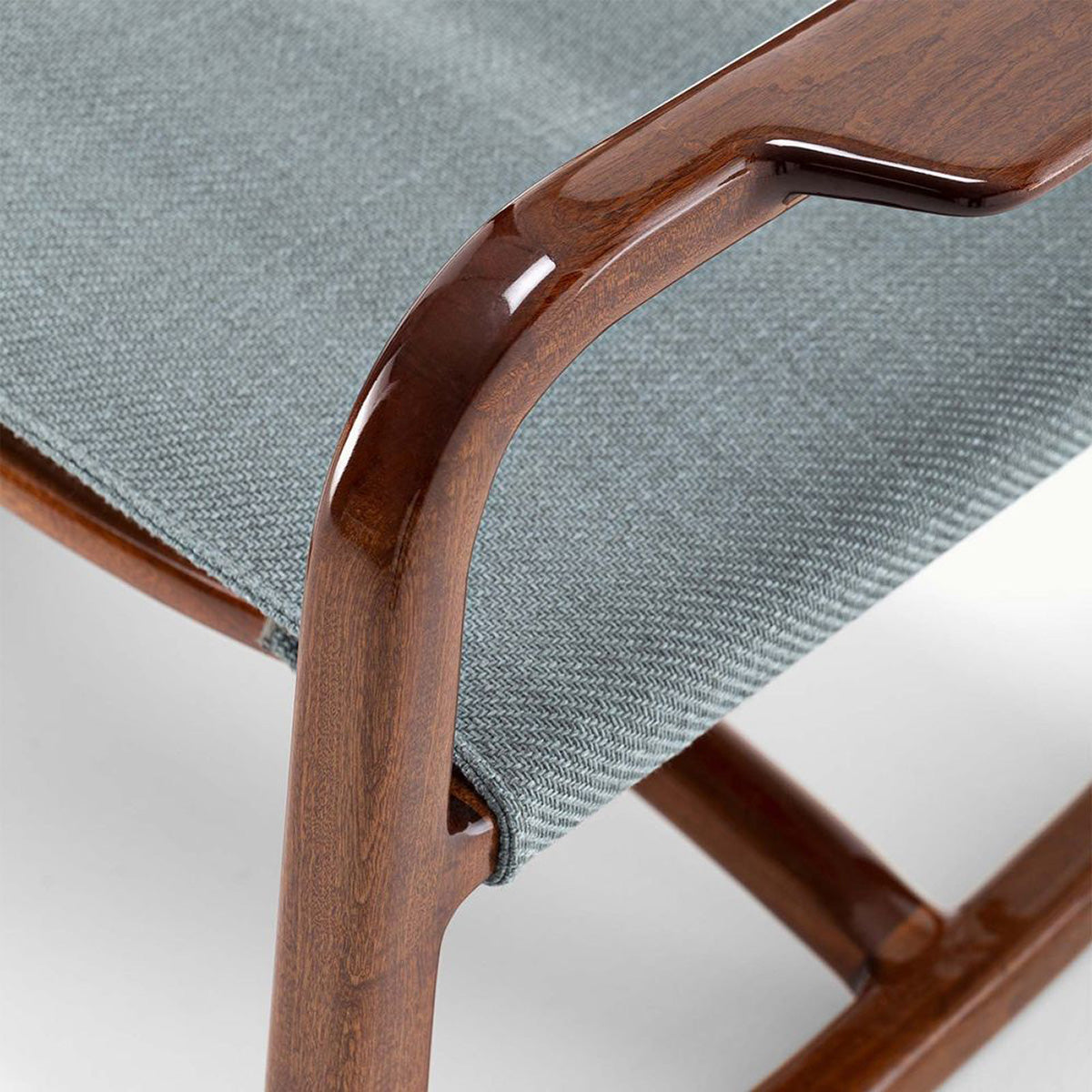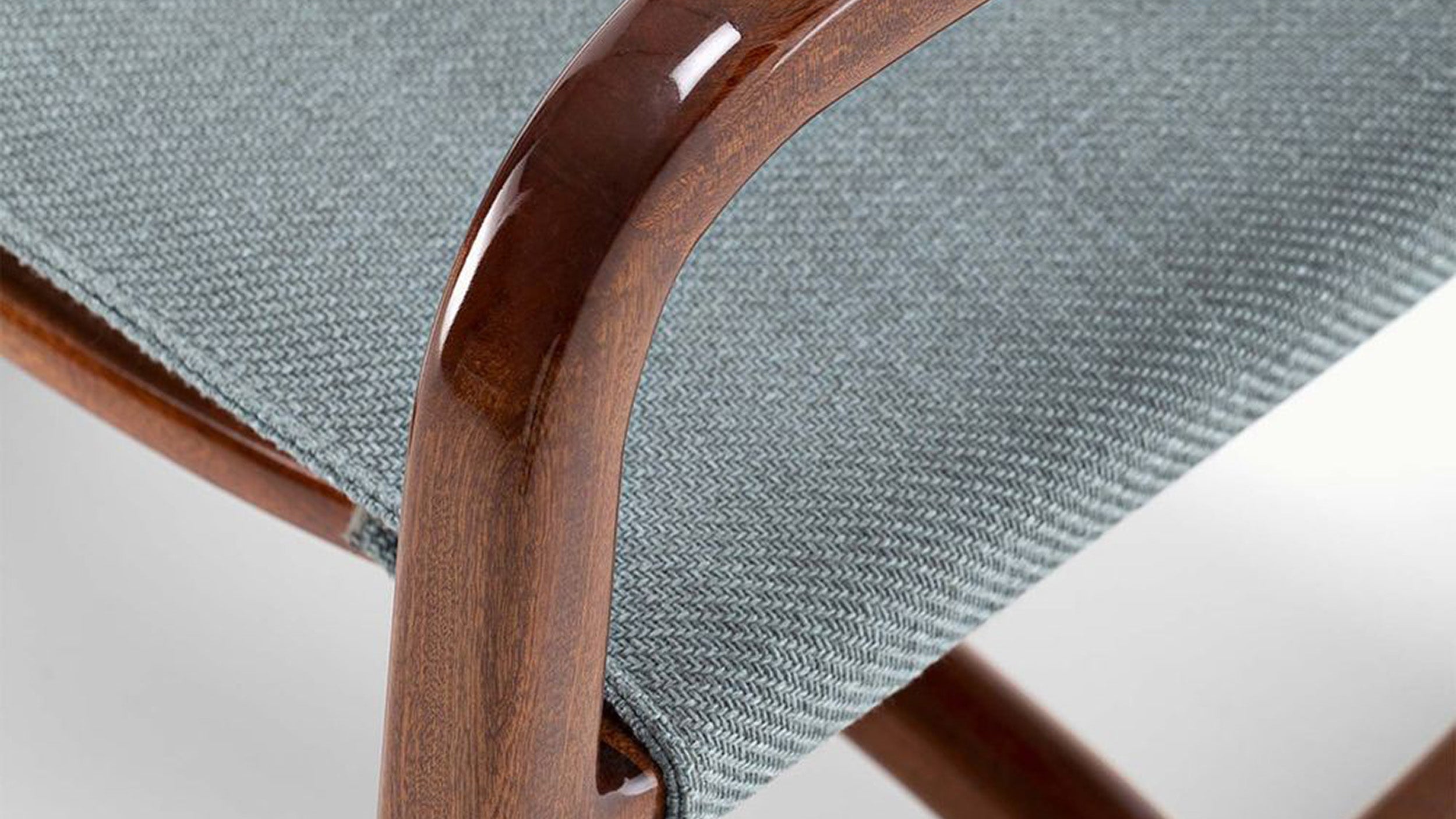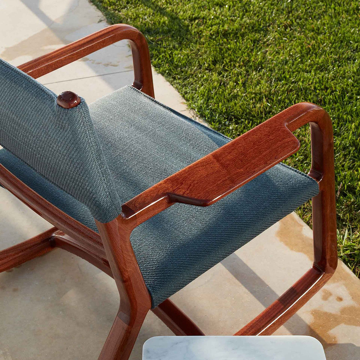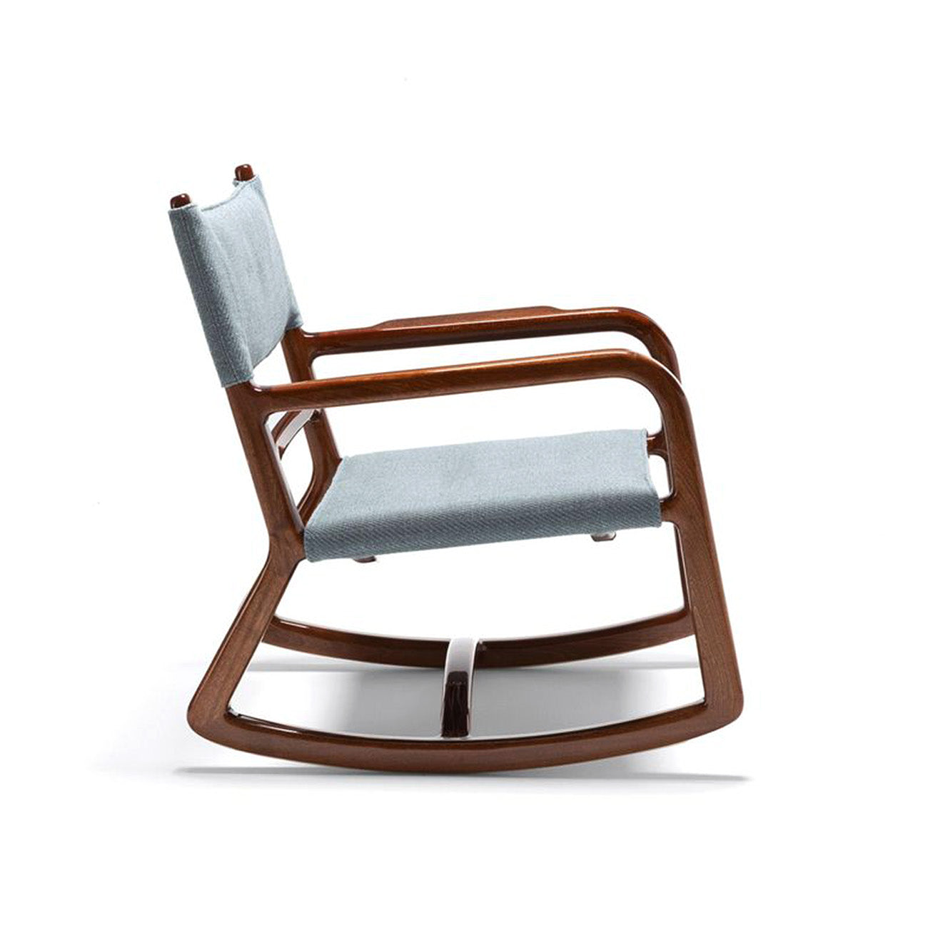 The LPIDC05 Rocking Chair, designed by Paola Navone for Exteta with Loro Piana Interiors, introduces rhythm into outdoor comfort. Its curved runners and generous seat encourage slow movement and reflective pause. Crafted in the same language of wood and fabric, it brings a poetic calm to verandas, decks, and shaded patios.