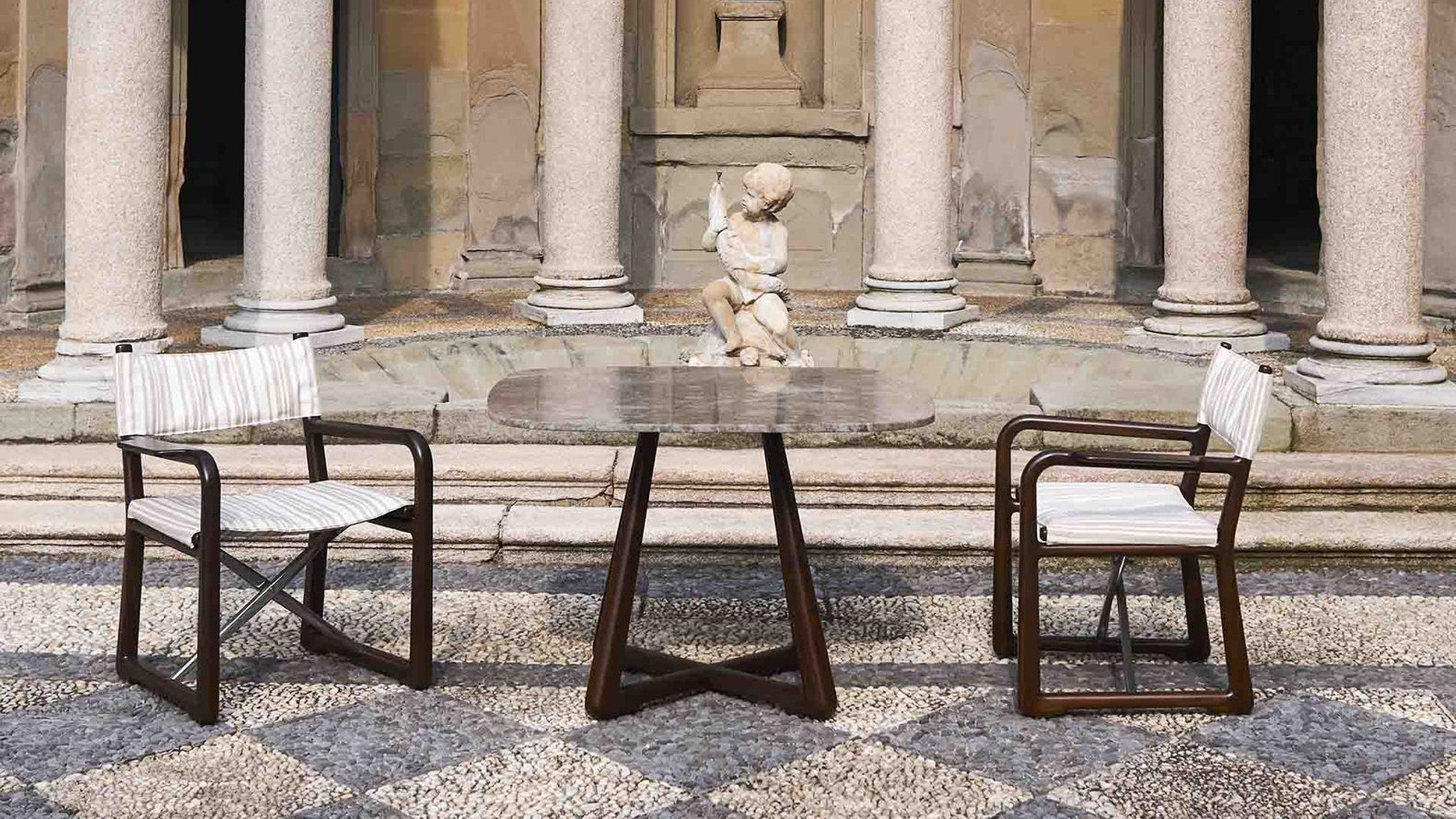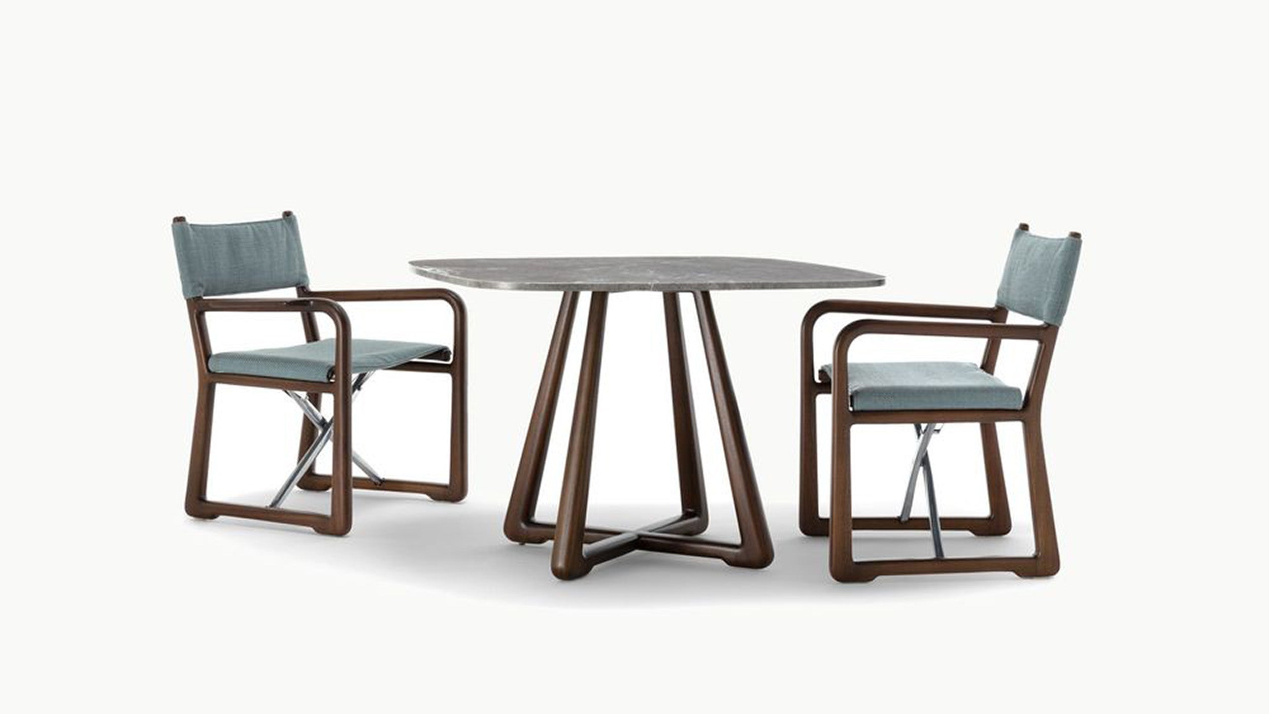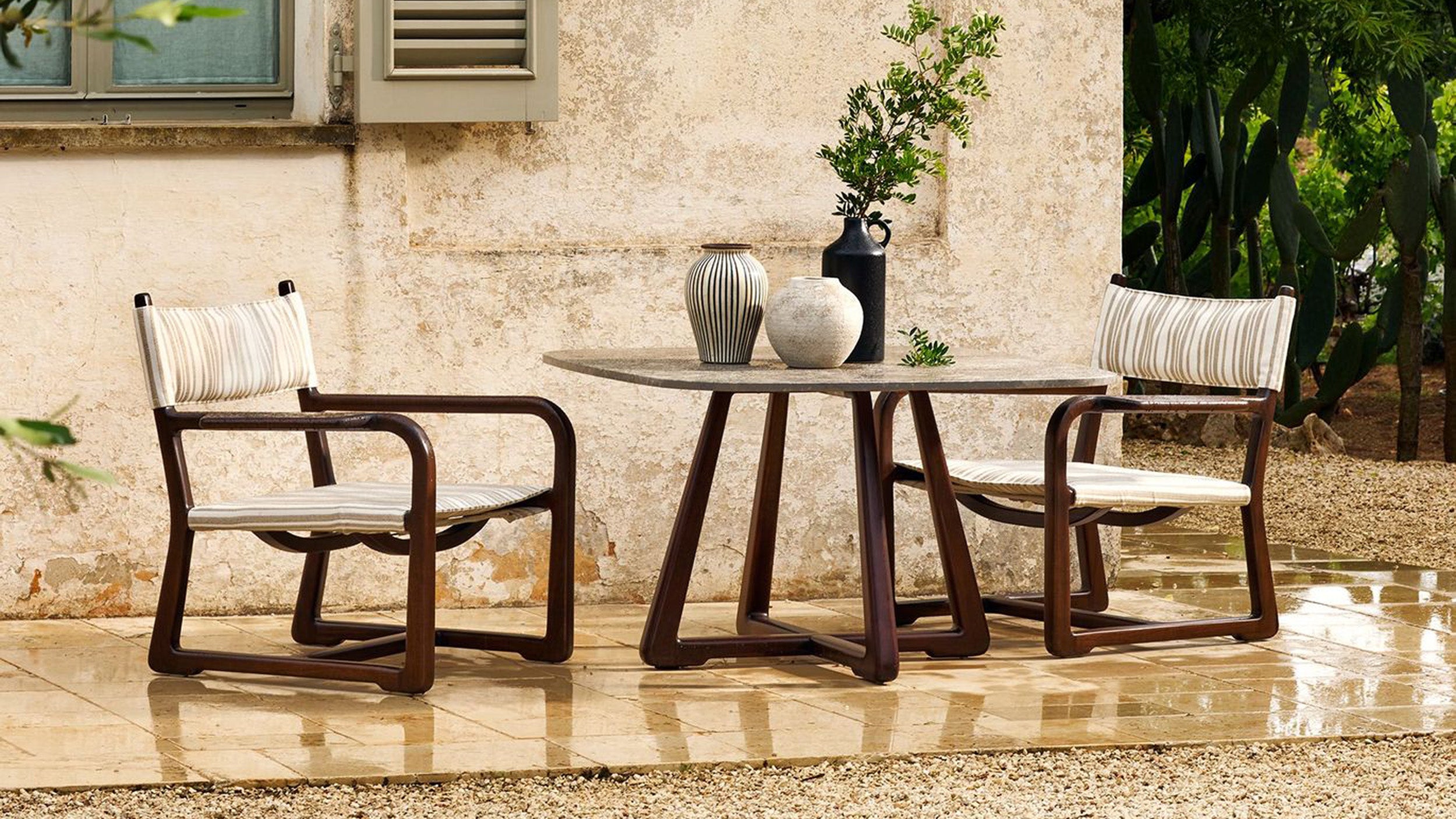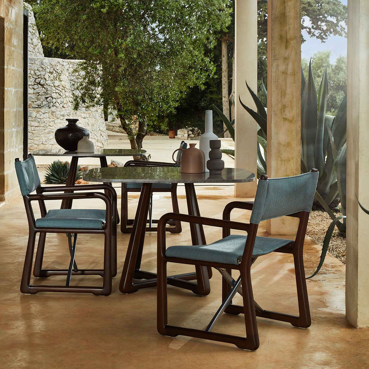 The LPIDC06 Table anchors the collection with structural clarity. Designed by Paola Navone for Exteta and Loro Piana Interiors, its sapelli wood surface can be paired with marble for an elevated touch. Balanced proportions and quiet elegance allow it to complement the full suite of Delight seating without overpowering the composition.