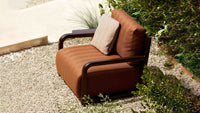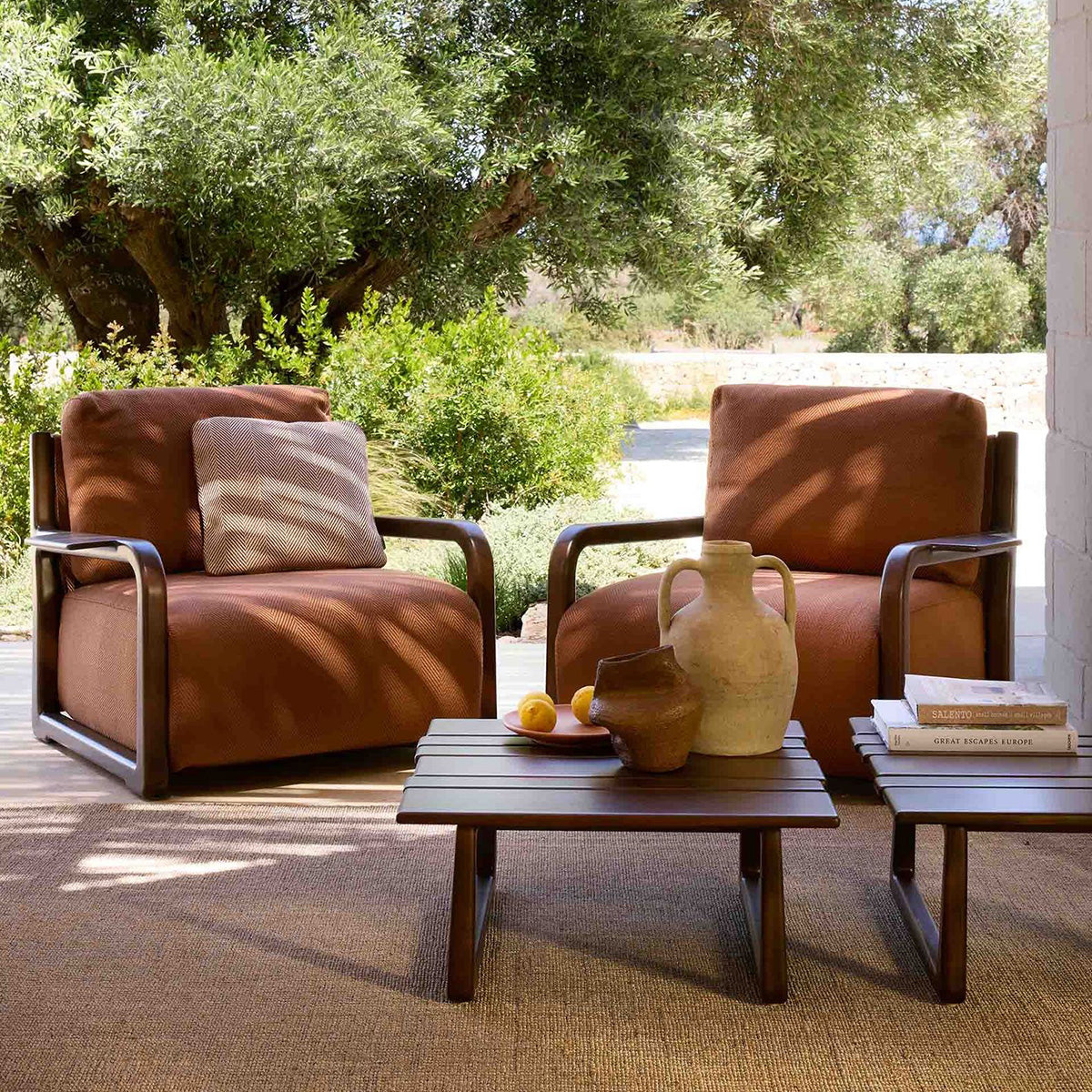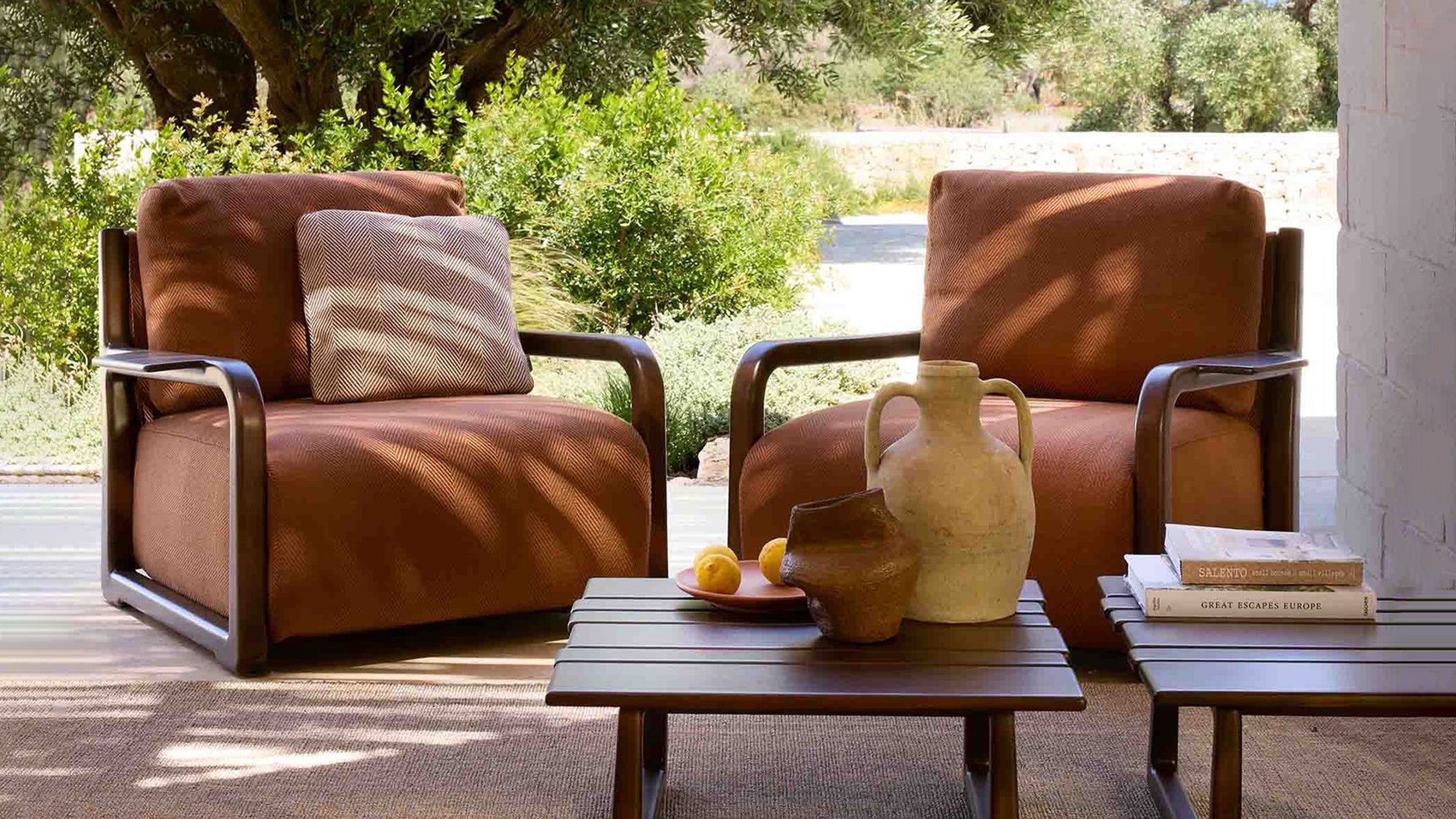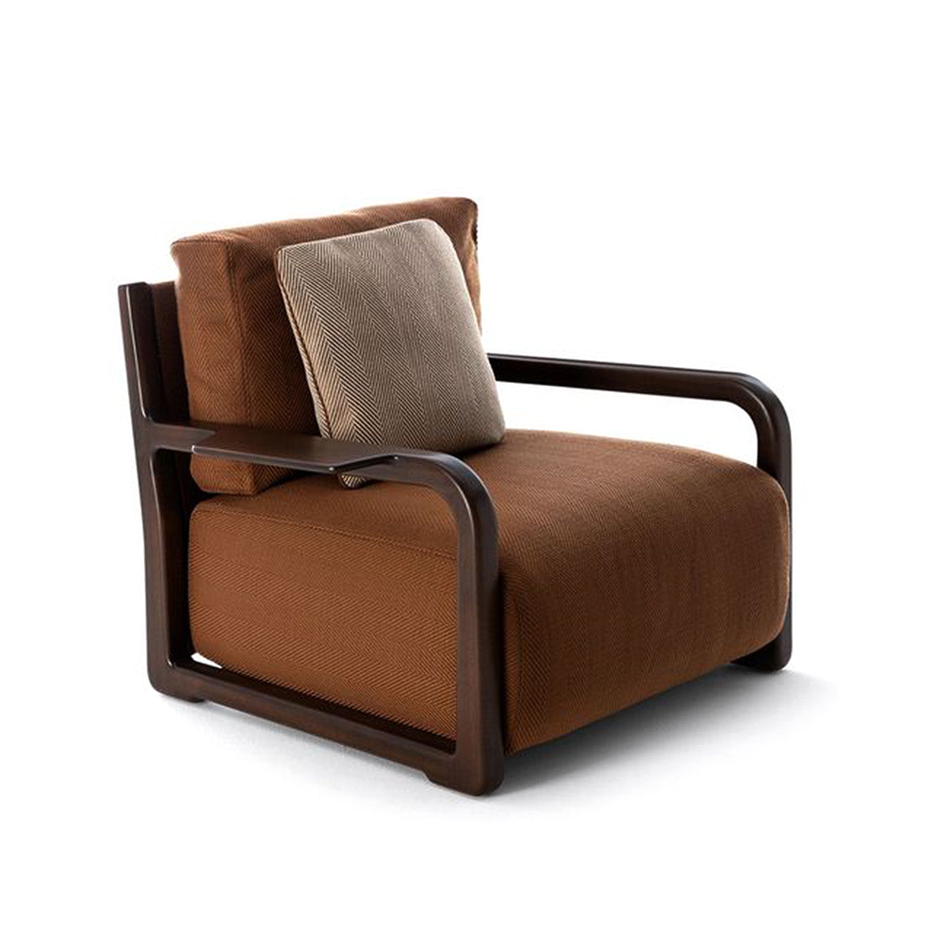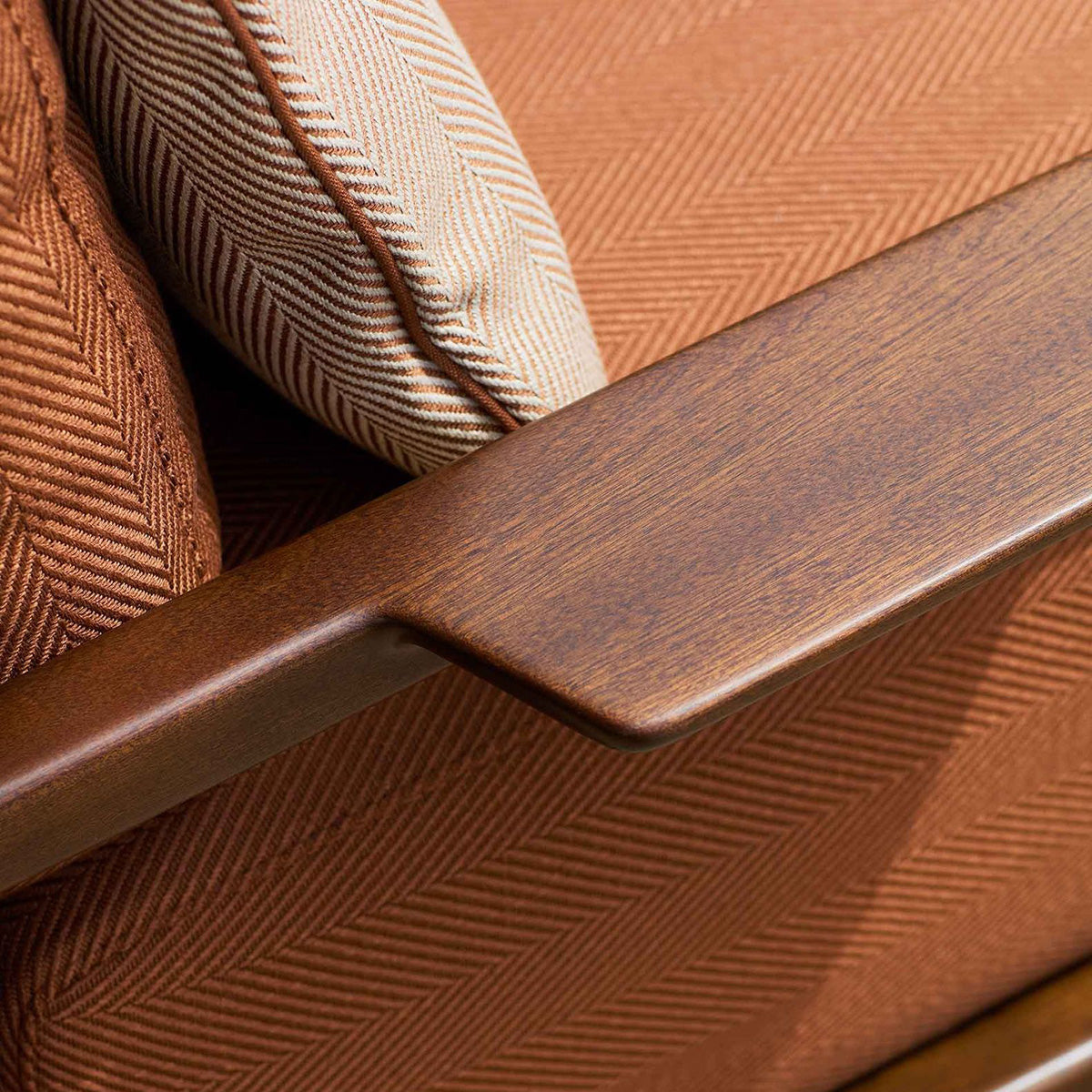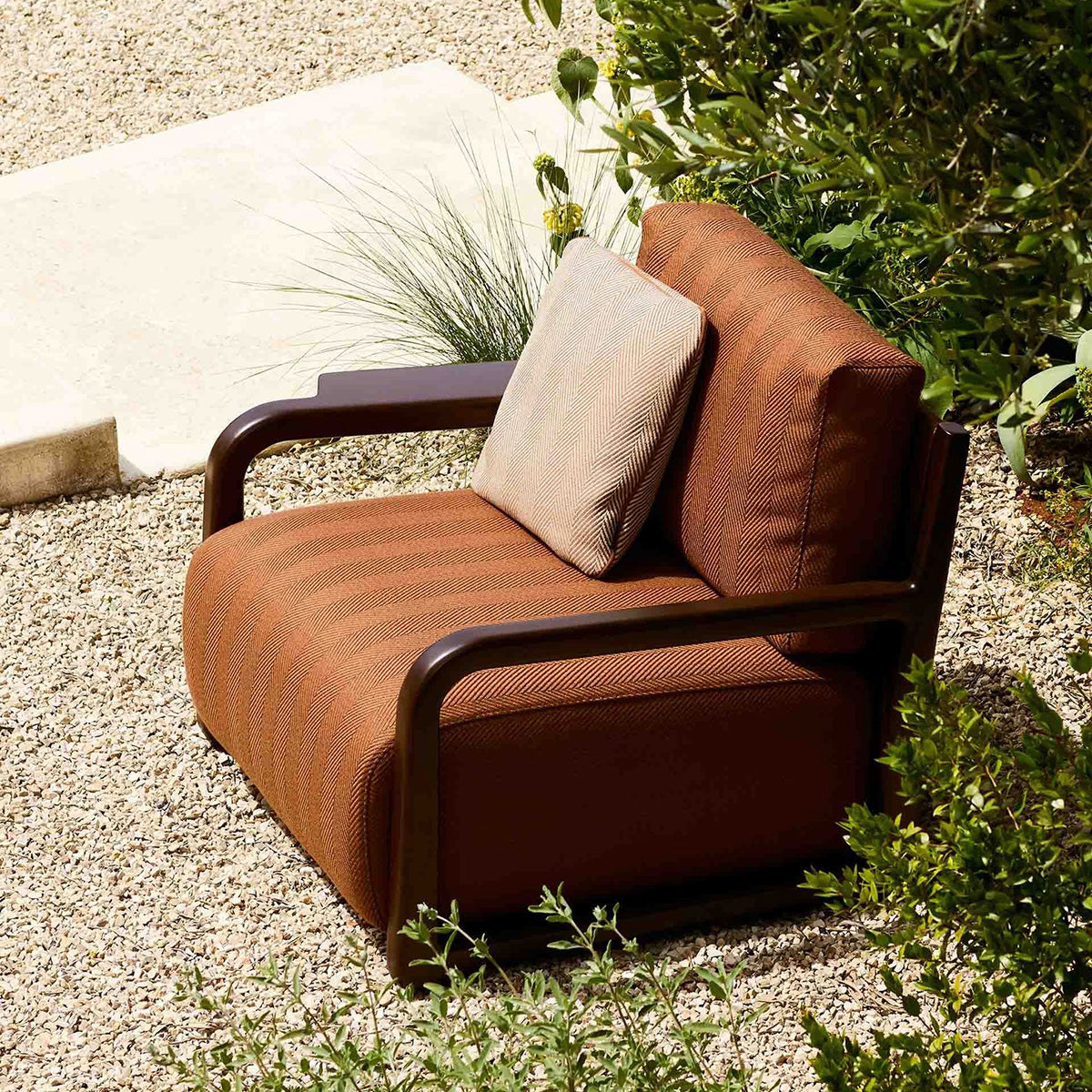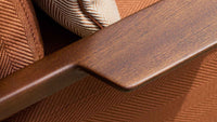 The LPIDC08 Lounge Chair shares the same collection and designer, Paola Navone for Exteta with Loro Piana Interiors, but focuses on the intimacy of individual comfort. Its deep proportions and refined upholstery invite long hours of relaxation. A sculptural silhouette and crafted wood structure tie it seamlessly to the wider Delight family.