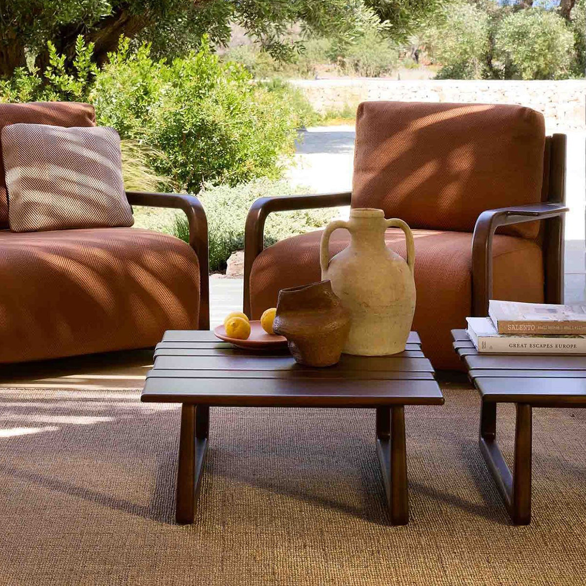 The LPIDC09 Wooden Coffee Table is a simple yet essential piece within the Delight Chairs collection. Designed by Paola Navone for Exteta with Loro Piana Interiors, its mahogany top provides a grounding element for outdoor lounges. Subtle craftsmanship ensures it reads as both functional surface and visual anchor.