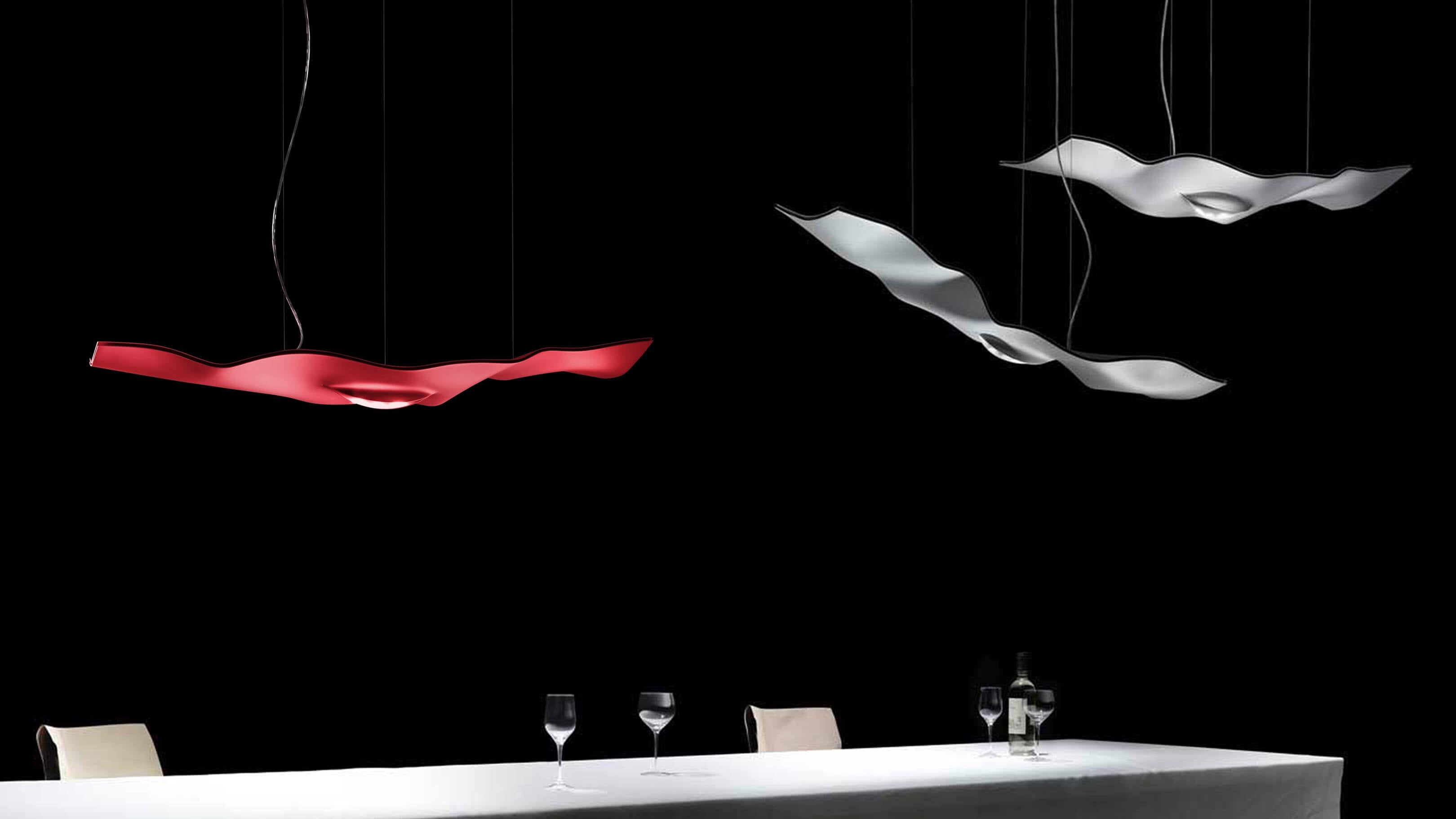 Luce Volante — элегантный светильник, излучающий изысканность и изящество. Он словно парит в воздухе, словно ткань, развевающаяся на ветру. Этот уникальный дизайн обеспечивает превосходное и функциональное освещение, идеально подходящее для освещения столов или столешниц.