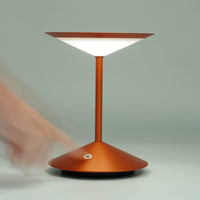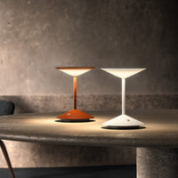 The Narciso Table Lamp, designed by Nicola Gallizia for Penta Light, transforms a simple metallic cone into an artfully reflective sculpture of light and form. Inspired by the myth of Narcissus gazing into his reflection, the design splits the cone to diffuse delicate light and consider materiality in a new way. With both rechargeable and mains-powered versions available, it seamlessly blends technological innovation with minimalist elegance. Available in muted finishes like matte bronze, white, grey and orange, it suits refined modern interiors with subtle personality.