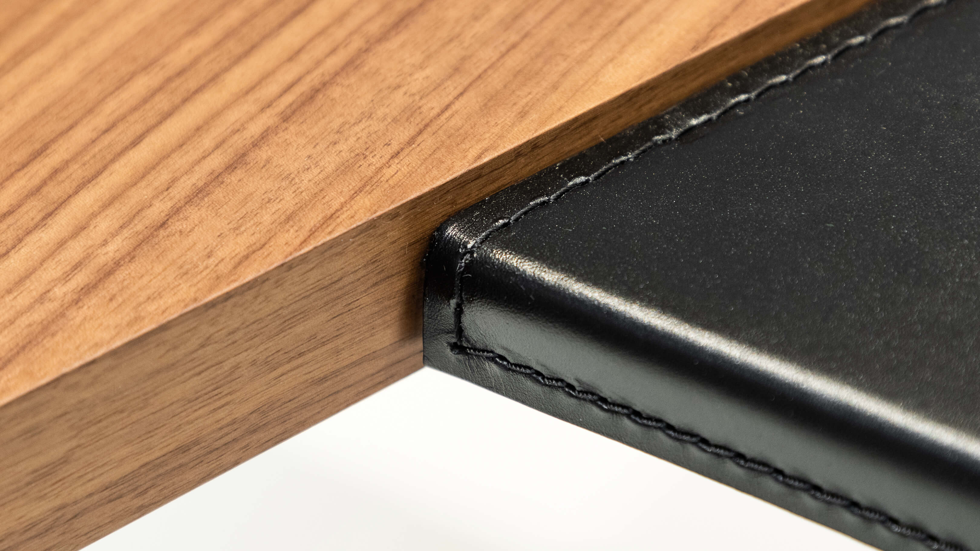 Рама имеет разную толщину: одна плоскость толще другой, и та, что выше, доступна с кожаным верхом. В переводе с итальянского «stradera» означает баланс, поэтому неудивительно, что этот дизайн бросает вызов нашему восприятию равновесия и уравновешенности.