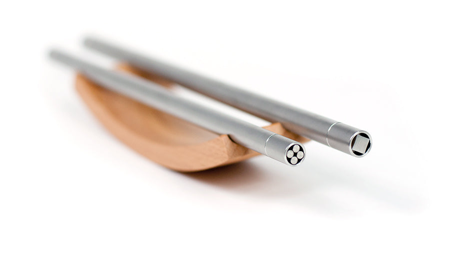 Удобный набор для соли и перца, который легко переворачивает столовый прибор. Трубчатые солонки и перечницы Schmuck + Gerat представляют собой две цилиндрические солонки из нержавеющей стали, установленные на изогнутом деревянном основании, напоминающем палочки для еды, установленные на подставке. Новая интерпретация поднимает качество еды на новый уровень благодаря элегантной форме и продуманной функциональности. Легко наполнять, каждая солонка оснащена винтовой крышкой для добавления приправы. Чтобы было легче различать соль и перец, трубочки имеют разную длину и уникальную конструкцию горлышка. Гармония металла и дерева в трубчатых солонках и перечницах создает минималистичную скульптуру для стола, которая превратит добавление приправы в ваш следующий обед в незабываемое приключение.