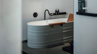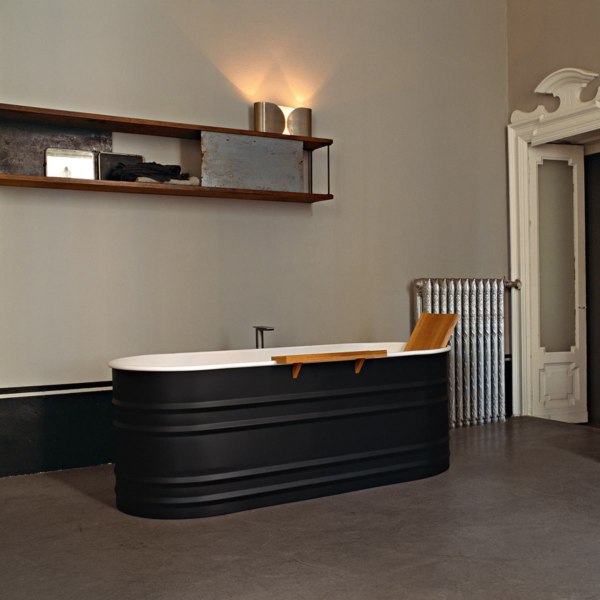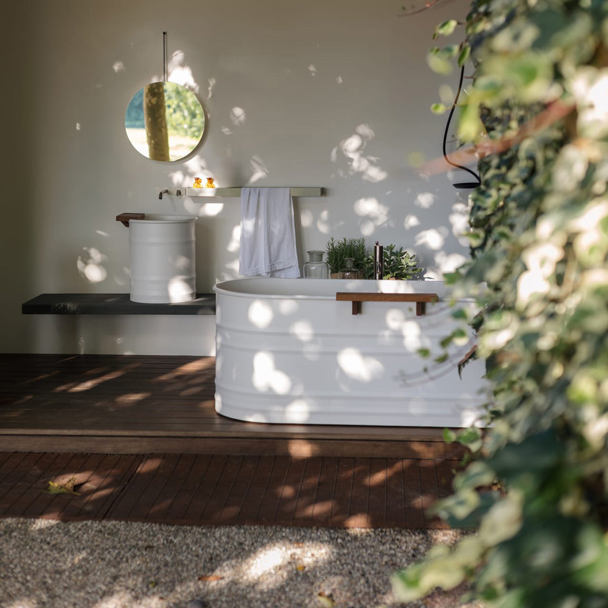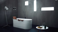 Полностью белая ванна Exmar Inout с округлой внутренней частью и невероятно универсальным дизайном доступна в различных вариантах: отдельно стоящая, для угловой, врезной или встраиваемой установки.
