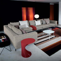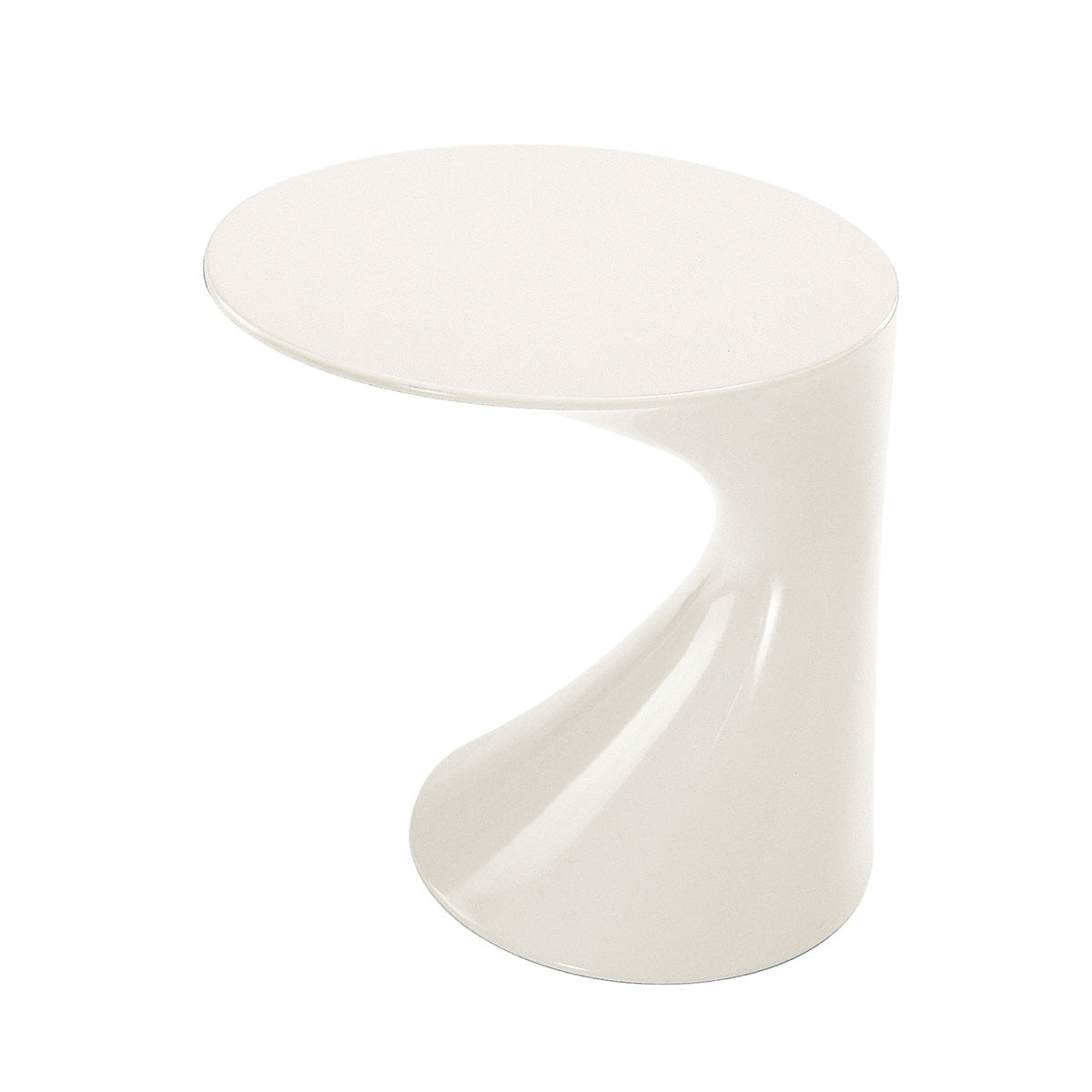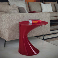A bold and unique graphic shape accentuated by the concave form of Tod allows one to slip the top above the seat of a sofa. By young American Designer Todd Bracher, the table is equally brilliant removed from the sofa; the side table stands independently and is realized in brilliant varnished polypropylene in vivid colors. A small form with a strong personality- just like a beauty mark- the table was inspired by super-model Cindy Crawford's iconic mark. The small table compliments furniture such as sofas and armchairs as the height of the cantilevered top is just right to slightly overhang onto the seat cushion. Not trying to be the largest object in a room, Tod still manages to bring a strong personality to any space.